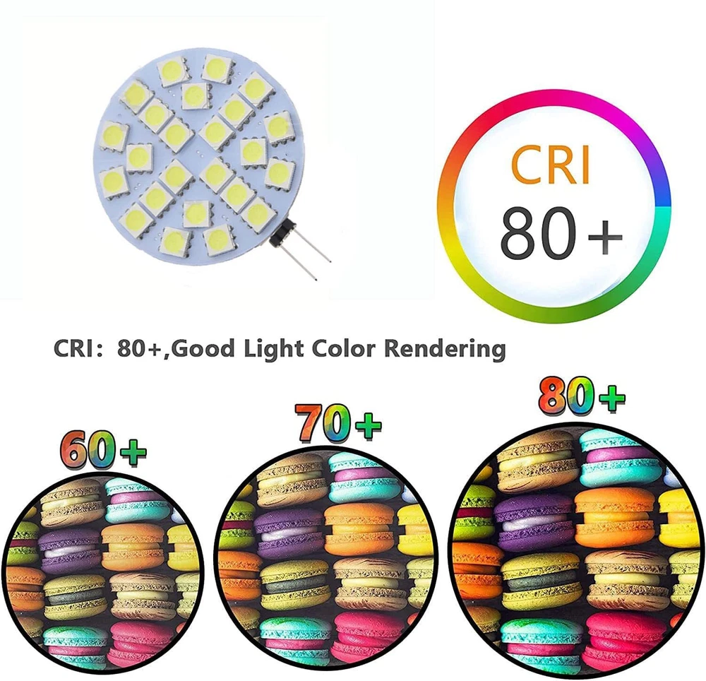 Product Description 【Energysaving】: Save up 90% on your electricity bill with LED lighting! Replace 30W halogen bulb by 3W LED. Now with LED for amor true and natural color experience. 【LongLifespan】:12V DC more stable than 12V DC LED Bulb, operating range with a lifespan of 30,000 hours—25 times longer life than incandescent bulbs. 【High Power 24 SMD 5050 Chip LED】: Low power consumption measured at 3 Watts producing 180 lumens 【HIGH QUALITY LIGHTING】:NO Flickering, NO Buzzing and NO Radio or TV Interference. 【LESSHEAT】:Completely switch to energy efficient LEDs with reduced operating temperatures among all LED lighting inside your travel trailer. Specification: Name:G4 LED Light Bulbs Power:1W Voltage:DC 12V Color:Daylight White(6000K-6500K) Chip type:5050 SMD Base type:G4 Dimmable:yes Beam angle:180°Beam Angle Size:43mm/1.69inch Package include:6 pack G4 LED Light Bulbs