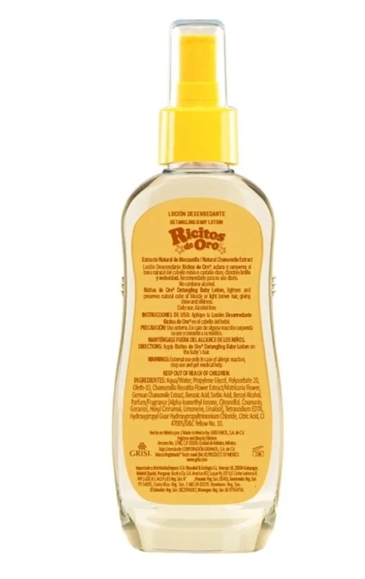 Bundle Description:3 packColor:ClearFormulation:SprayDepartment:UnisexCountry/Region of Manufacture:Mexicogtin13:Does not applyHold Strength:Light HoldType:HairsprayScent:chamomileSuitable For:HairVolume:125ml eachFeatures:All Natural IngredientsCustom Bundle:YesSize Type:125 ml eachBrand:Ricitos De OroHair Type:All Hair TypesMPN:N/AUPC:Does not applyProduct Line:Ricitos De OroStyling Effect:Nourishing/Hydrating, Shine/GlossPeriod After Opening (PAO):36M