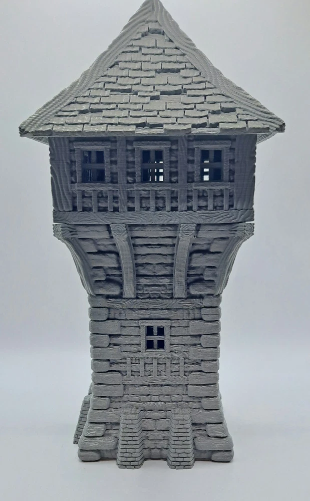 This 3d printed Wizards tower is perfect for tabletop roleplaying games and scenery. It's a great addition to any miniature or war game collection. The intricate details and high-quality printing make it a must-have for any fantasy enthusiast. The house is ideal for creating a unique and exciting atmosphere for your games. This tower is 3 stories tall and is suitable for 28mm and 32mm miniatures. It is a 3d printed with PLA plastic that ensure durability and longevity. Whether you're a seasoned player or just starting out, this tower is sure to impress. Add it to your collection today and take your gaming experience to the next level! Please note: it will come unpainted in a random color. However, it is very easily painted. Returns are accepted if the item does not match the listing description or is not accurate as advertised. If you have any questions or concerns please contact me. Accreditation Designer: Dani Amengual Check them out on myminifactory. https://www.myminifactory.com/users/DaniAmengual I am a licensed printer of Dani Amengual