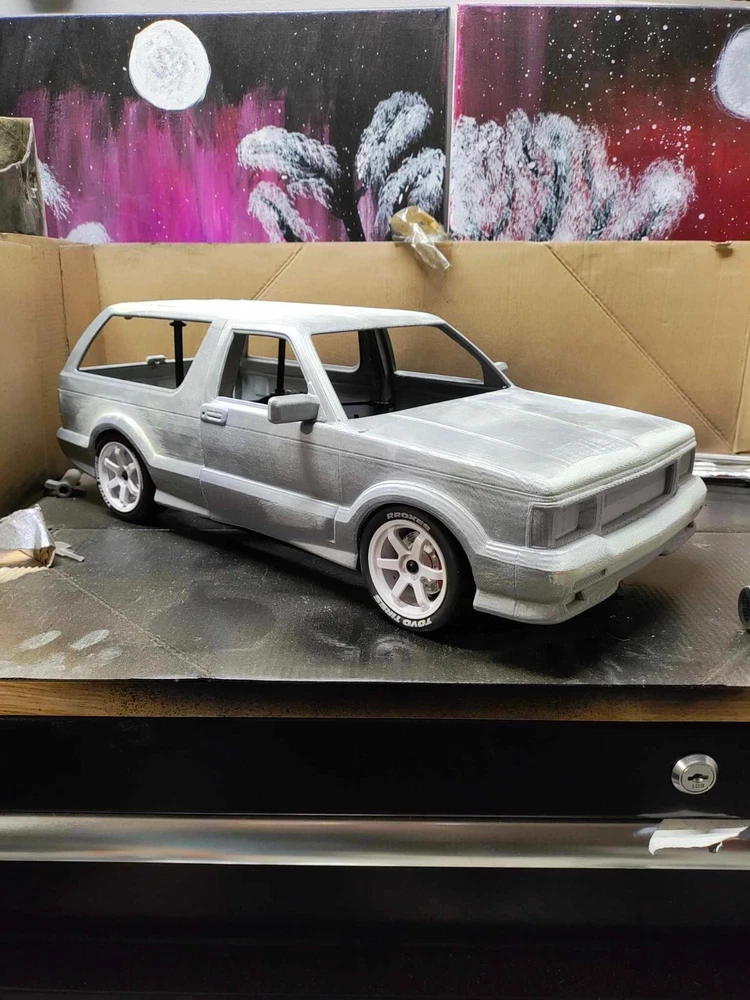 This 3D print is of a GMC Typhoon. It comes SHIPPED IN 2 PIECES AND UNPAINTED JUST AS A SHELL (NO GLASS). All orders will be printed in Gray, if you would like white or black please message me. The photos you see are on a Fazer mk2 FZ02L 1/10 scale frame and required very little trim work to fit. YOU WILL NEED TO PROVIDE MOUNTING HARDWARE. We set this one up on magnetic mounts mainly for the clean look it gives by not having the pins stick through the body. The wheel base is 274 mm, and the front wheel to wheel width is 203 mm. KEEP IN MIND THIS IS 3D PRINTED AND MAY HAVE SMALL BLEMISHES BUT I HANDLE EVERY PRINT TO ENSURE THE BEST QUALITY TO MY ABILITY AND IF I BELIEVE ITS NOT TO MY STANDARDS I WILL FIX IT OR RE-PRINT IT. Any other questions, please ask and thanks. Design by Gauderio designs 3d