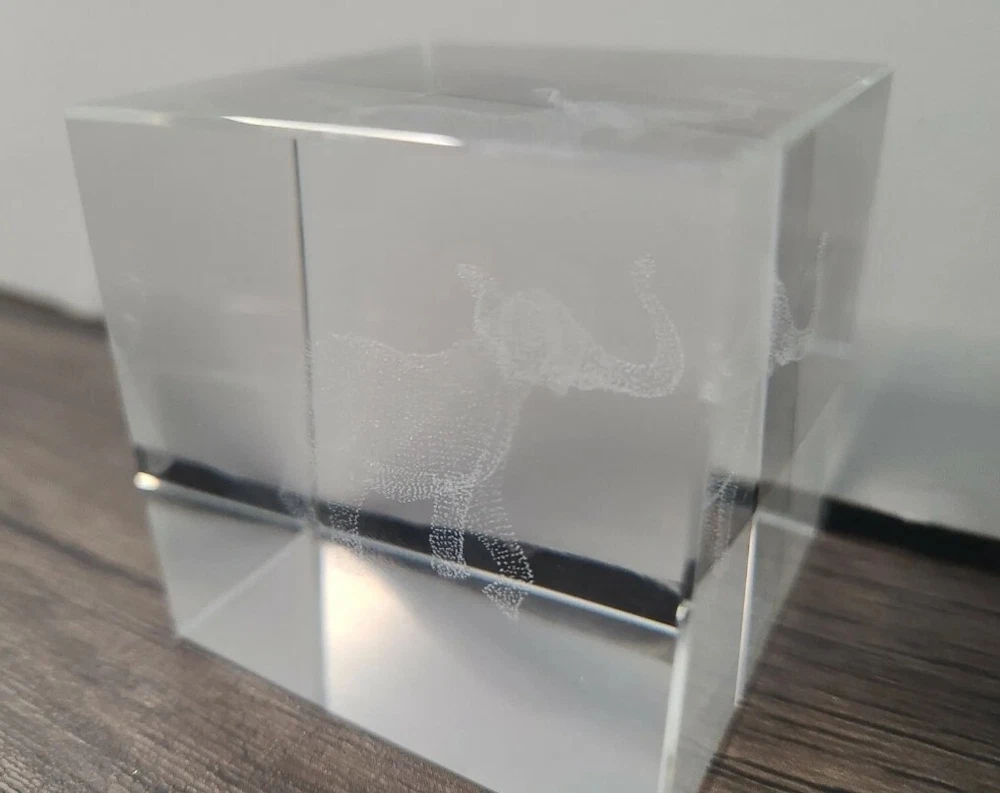 Vintage Crystal Glass Buddha Paperweight Laser Etched 3D Meditation 5 3/4" Tall