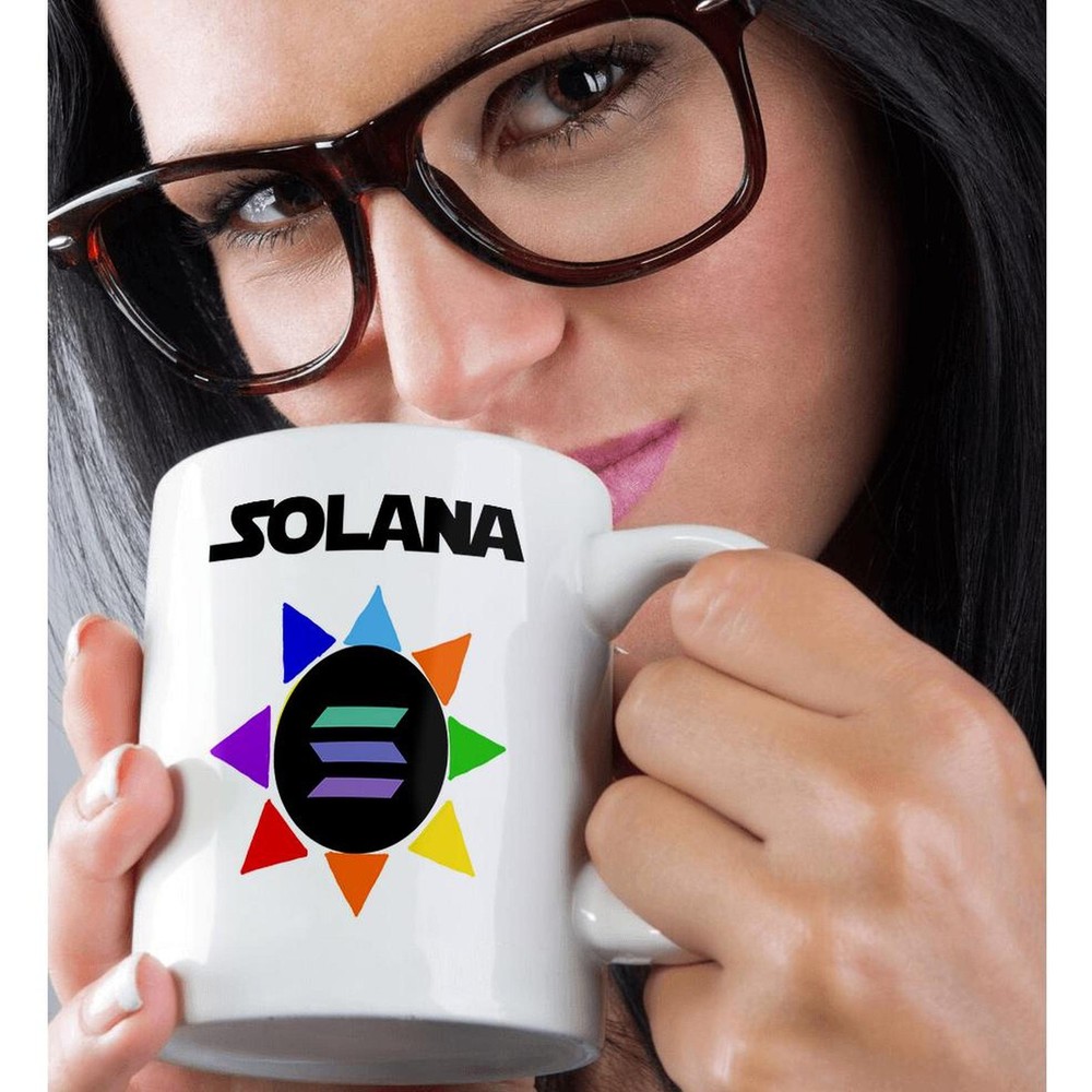 3dRose, Cool Fun Solana Sun and Rainbow Crypto currency SOL Coin Investor, Mug