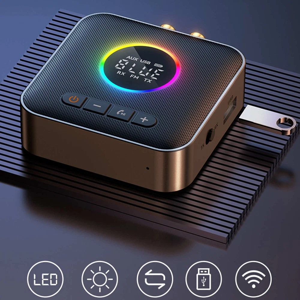 Product Description Features: Bluetooth Receiver/Transmitter: Bluetooth receiver and transmitter can transmit high quality music from your cell phone, computer or tablet to any of your home stereo system via Bluetooth. It can also transmit music from your TV, computer, projector, amplifier to Bluetooth headphones or speakers (automatic proximity connection), plug and play, easy to use! Upgraded digital display + RGB design: allows you to clearly see the current mode and working status: TX, RX, USB, FM radio, call mode, when you adjust the volume to show the volume level, show the time of the song when playing USB, so that your operation is more intuitive and simpler. Upgraded RGB design, three display states, 8 color adjustments, play music melody with different effects, a stronger sense of atmosphere! Wider compatibility: using high quality 5.4 chip to ensure fast and stable bluetooth connection, support one tow two, connect two cell phones at the same time, two people at the same time to share the music, playback at will switch without restriction. We have a port with AUX, RCA connection, also supports USB flash drive, FM radio function, powerful compatibility to meet your daily music experience! Portability + Stable Connection: Small and exquisite appearance, full of functions, full of hand, easy to carry for all kinds of occasions, can receive Bluetooth signals within a range of 66 feet, transmission is more stable, so you can enjoy CD-like sound quality. Note: Operating range may be affected by Wi-Fi routers, wireless TV adapters, doors, walls, and depends on the receiving device. Specifications: Charging Interface: Type-C Charging Input: DC 5V-1A(max) Audio Interface: 3.5mm AUX/RCA/USB Wireless Distance: 20meter (Accessibility) Music Format: MP3/WAV/WMA/APE/FLAC/M4A/ALAC/AMR Bluetooth Protocol: HFP/A2DP/AVRCP USB Flash Drive Format: FAT12/FAT16/FAT32/exFAT Built-in battery: 3.7V/400mAh (3.7W) Charging time: about 1 hour Working frequency band: 2.402GHz -2.480GHz FM frequency range: FM 76-108MHz adjustable Sensitivity: -85dBm<0.1% BER Signal to noise ratio: ≥90dB Distortion: ≤0.1% Core Functions: RX Receive/TX Transmit/FM Transmitter/USB U-Disk Play/LED Digital Display/RGB Color Lights Usage: Driver-free, Plug-and-Play Package includes: 1x Bluetooth Adapter 1x AUX 3.5mm Audio Cable 1x RCA Audio Cable 1x Type-C power cable Shipping 1. Items sent from US warehouse. 2.Receiving time = Processing time + Shipping time . 3. Processing Time: Around 1-2 business Days . 4. Shipping Time: 3-5 business day. it may have a little delay during some holiday (such as Christmas), any problem, please feel free to contact. Returns 1. 30 days warranty from the purchased date. Please contact us via email before returning the defective item. 2. Our warranty does not extended to any product that are physically damaged or that are not under normal operating conditions as result of misuse or improper installation on the buyer/user's part. 3. Return items should include the original packaging and all accessories. buyers MUST contact us for the returning address. 4. In all cases, buyers pay shipping fees at their own cost to return products for exchange or refund. We will be responsible for the postage of replacements. Refund will be made upon receipt of the returned item. Contact Us If you have any question, please e-mail us immediately, we will reply you as quickly as possible. We care about our valued customers, and will always try to help you. About Us We are committed to providing you with the best quality products and services. We hope your shopping experience is easy and enjoyable. Payment We accept all verified payment from eBay. powered by