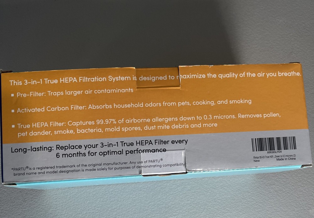 Flintar Model BS 08 H13 3 in 1 True HEPA Replacement Filters 2 Pack. Shipped with USPS Ground Advantage.