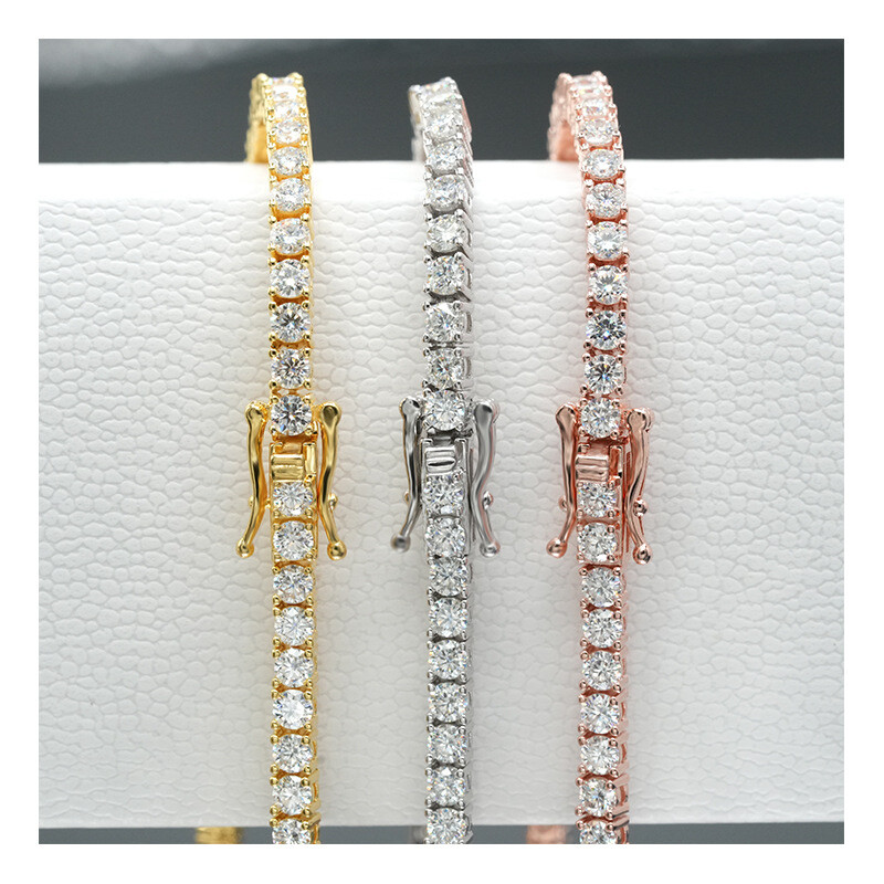 3mm S925 Silver Moissanite Tennis Chain Bracelet - Hip Hop Luxury Jewelry