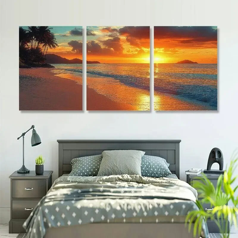 3pcs Coastal Palm Tree Beach Decor Theme Wall Art Canvas Unframed/Framed