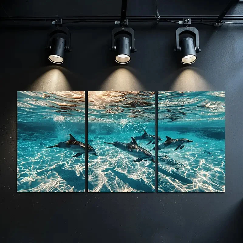 3pcs Graceful Dolphin Family Underwater Scene Canvas Unframed