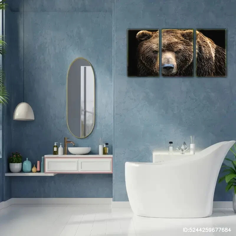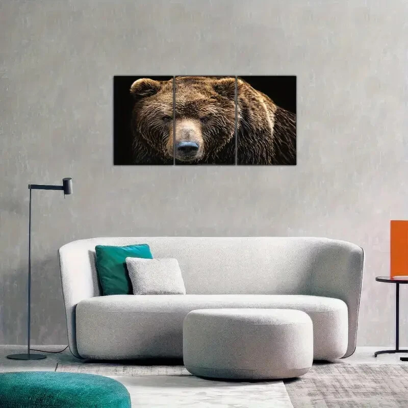 3pc Grizzly Bear Metal Wall Art Animal Portrait Print Ready to Hang