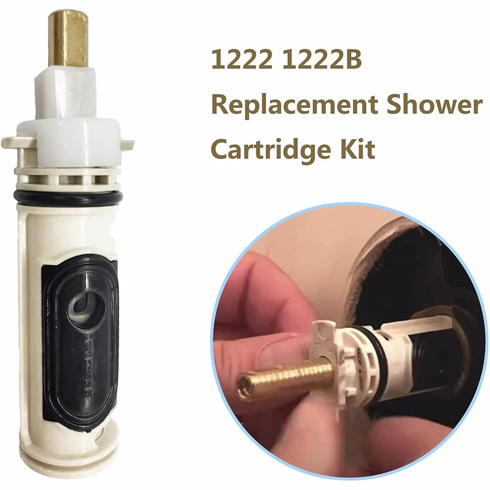 1222 Cartridge Single Faucet Handle Repair Parts Replacement for Posi-Temp Tub & Shower Faucets Configuration Faucet Brass and Plastic,Durable Easy Install Product Description Fitment: Replacement for Moen 1200 brass cartridge, [Fitment]: It is compatible with Posi-Temp Tub & Moen Shower faucets. Your situation may vary slightly, depending on the faucet model. [Durable]: Replace 1222 1222B, single handle replacement filter is made of durable and sturdy brass and plastic structure which can last for many years. [Advantage]:Designed for bathroom bathtub shower.It is no need to replace the entire accessories-sturdy, clean and effective filter replacement parts, perfectly fit your bathtub shower. [Easy]: It can be easily replaced-equipped with O-ring lubrication, rotating cover to loosen the installed cartridge , Installation/removal instructions, cost-effective maintenance. [Package]: 3 *1222 Cartridge. How to remove the 1222 Cartridge or 1222B Cartridge? Step 1: Prepare Turn off the main water supply, and open the faucet handle to relieve any water pressure and drain the lines. Step 2 Loosen the Handle Adapter screw and remove the Adapter. Step 3 Pull off the Key Stop and Adjustable Temperature Limit Stop, then the Stop Tube.Pull out the cartridge Retaining clip with Needlenose Pliers. Step 4 Make sure the cartridge is in the ON position.The notch in the stem should be facing up.Remove the cartridge from the valve.You can also use the cartridge Removal Tool to pull out the Cartridge How to install? Step 1 Apply grease to the cartridge Oval on both sides.Make sure the notch in the cartridge Stem are facing up, then insert the new 1222 into the valve. Step 2 Reinsert the Retaining Clip to hold the cartridge in place. Step 3 Turn the Cartridge to the OFF position.The notch in the stem should be facing down.Slide on the Stop Tube, Adjustable Temperature Limit Stop and Key Stop. Step 4 Finish up by reinstalling the Handle Adapter and Handle.