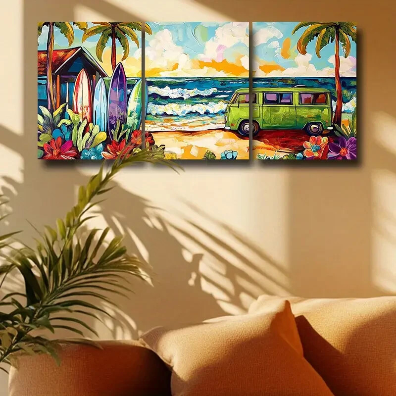 $ 18.033pcs Colorful Surf Van & Palm Trees Design Metal Print Ready to Hang Art