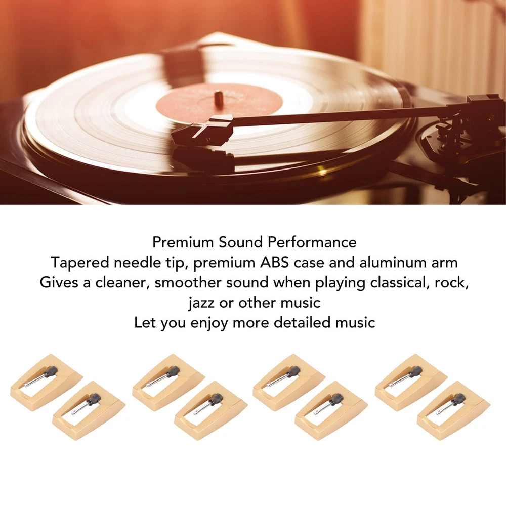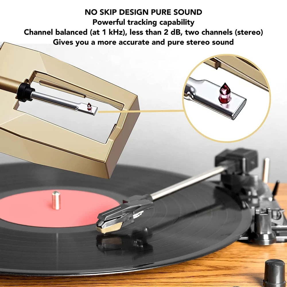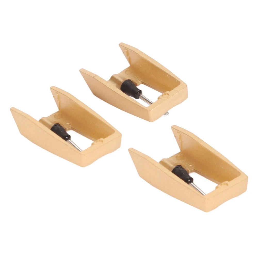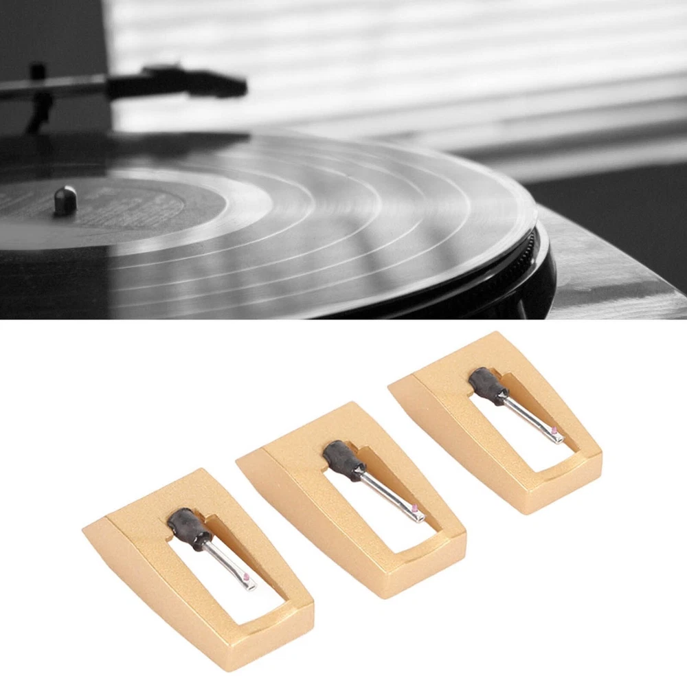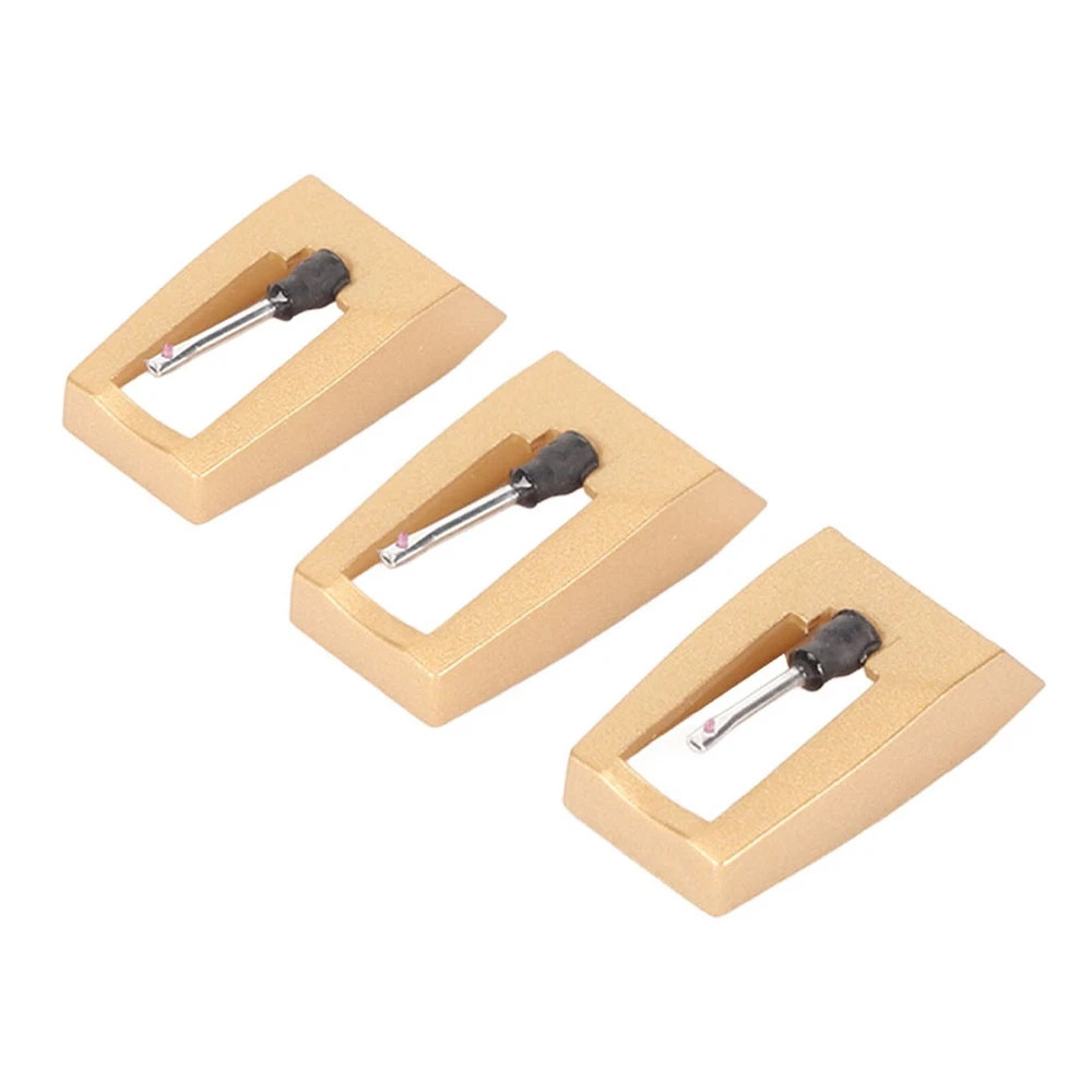 Feature: 1. WITH BRUSH: Record player needle and cleaning brush set, designed for music lovers, gold plated. The premium cleaning brush will help you care for your needles regularly and keep them working for a long time. 2. HIGH SOUND PERFORMANCE: With the tapered needle tip, premium ABS case and aluminum arm, this record stylus gives a cleaner, smoother sound when playing classical, rock, jazz or other music, enjoy more detailed music. 3. WIDE COMPATIBILITY: This record player stylus fits for Victrola, for , for ION, for Boytone, for Capehart, for Innovative Technology, for , for CROWN, for Sylvania, for , for GRACE DIGITAL, for Leetac, for Pfanstiehl, for Soundesign, for TechPlay, for , for , for York Yorx and more. 4. EASY TO REPLACE: Replacement turntable record stylus supports playback of 33 1/3, 45PRM records, easy to install. You can easily replace (remove and install) the record stylus at any time without any tools. 5. THOUGHTFUL PACKAGING: Each turntable needle comes with a sturdy plastic protective cover that guards it from any damage when not in use, and is packaged in a box for transportation. Specification: Item Type: Record Player Stylus Material: ABS, Aluminum Alloy Stylus Sizes: Length: Approx. 18mm / 0.71in Front Width: Approx. 9mm / 0.35in Rear Width: Approx. 10mm / 0.39in Front Height: Approx. 3mm / 0.12in Rear Height: Approx. 4mm / 0.16in Color: Gold Needle Pressure: 5.0g Output Voltage: 200mv-300mv (1K Hz = 3.54cm/sec) Channel Distortion: (1k Hz) ≤ 3dB Channel Separation: (1k Hz) ≥ 15 dB Frequency Response: 80-10000Hz (±7dB) Compatible: Over 90 percent of record players, turntables Package List: 3 x Record Player Stylus 1 x Brush Note: Manual measurement, please allow some errors.