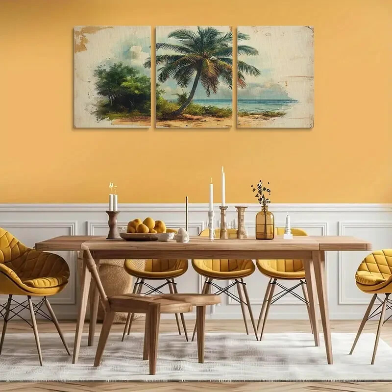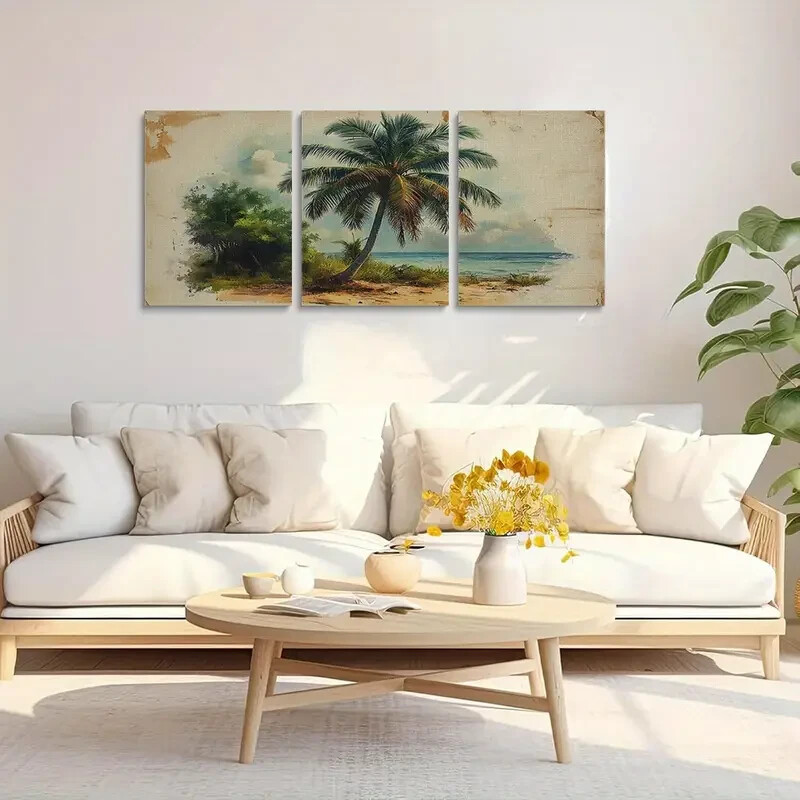 $ 18.353pcs Coastal Beige Sage Green Palm Tree Metal Print Ready to Hang Art