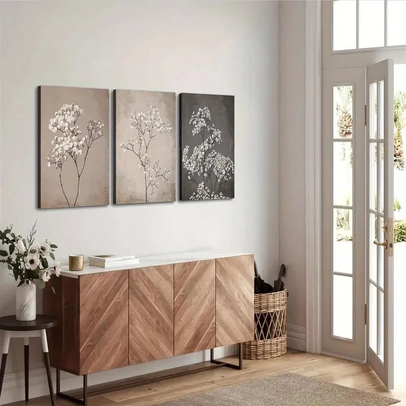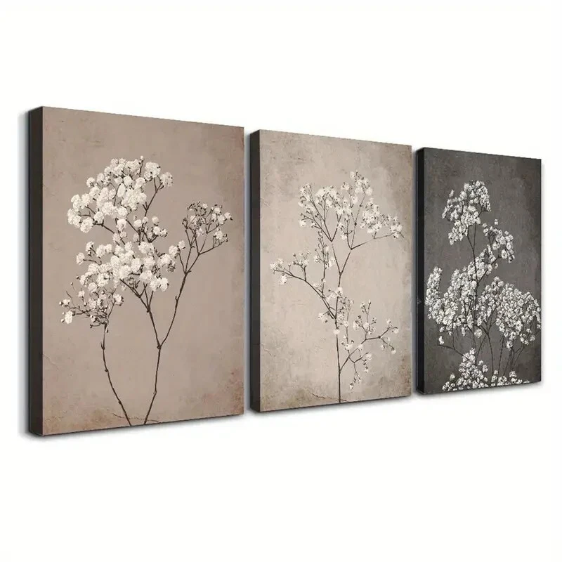 3pcs White Vintage Floral Wall Art Canvas Unframed