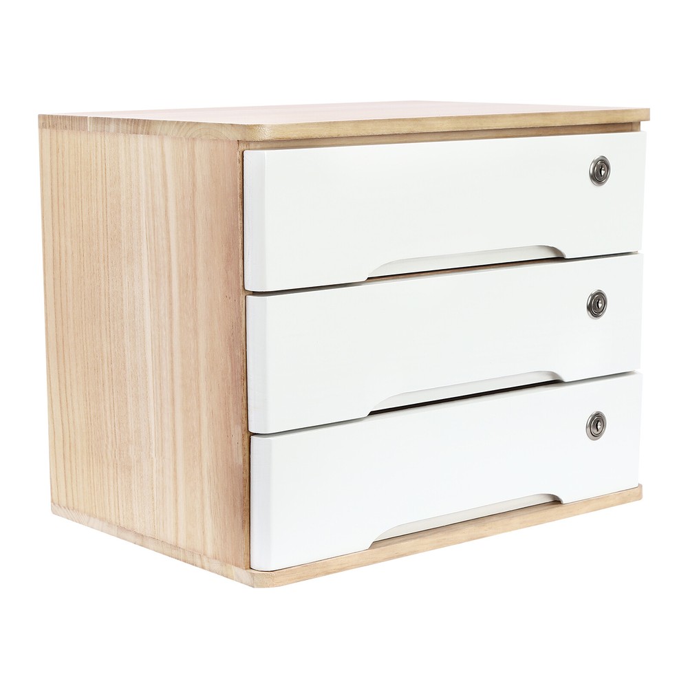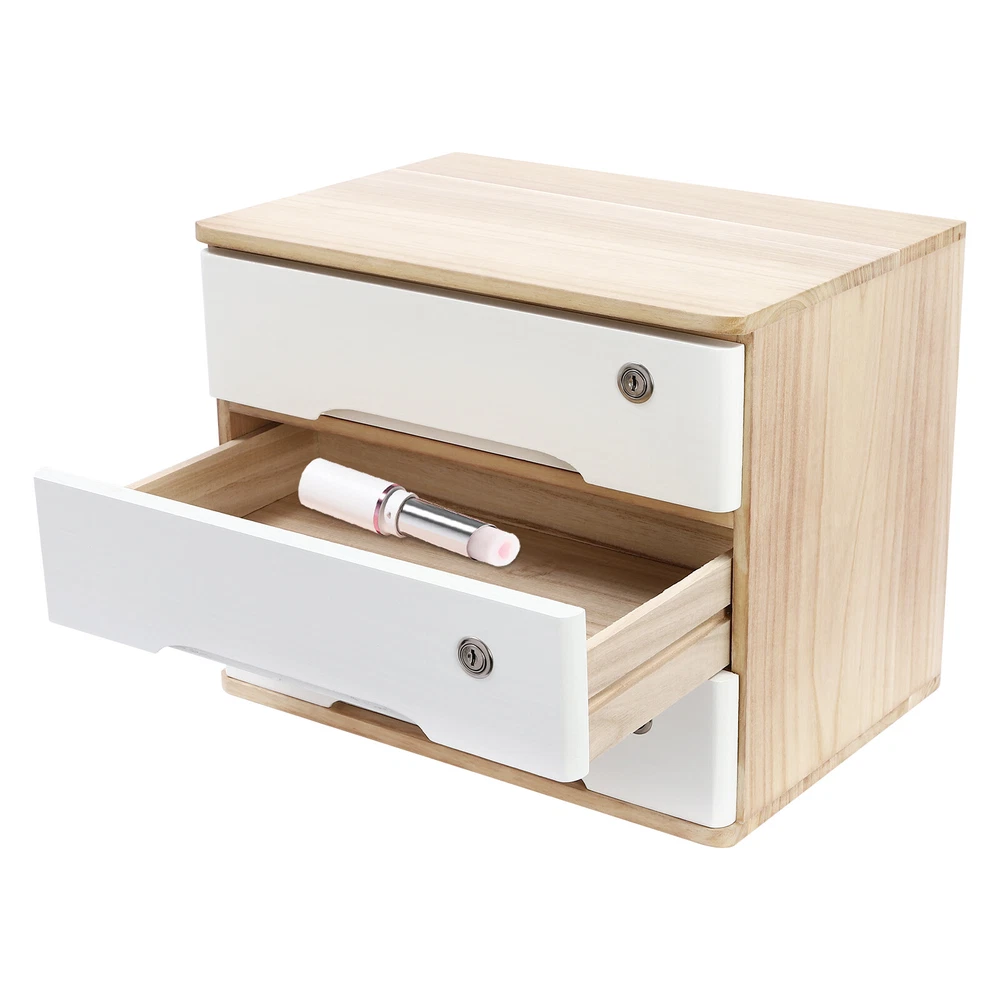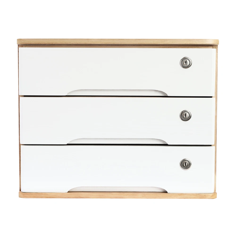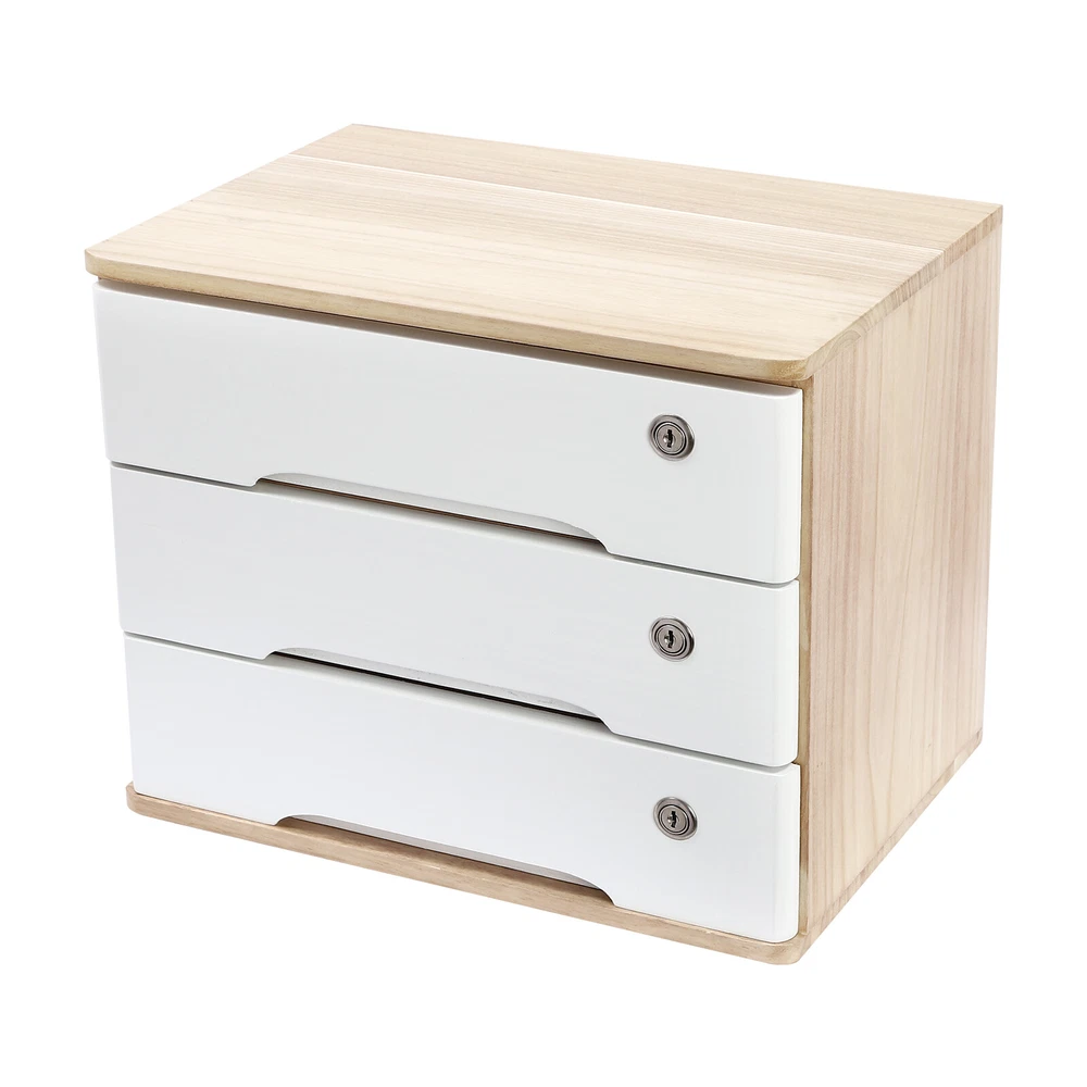 3-tier Wooden Desktop Storage Cabinet w/ Lockable Drawers+6*keys For Home Office