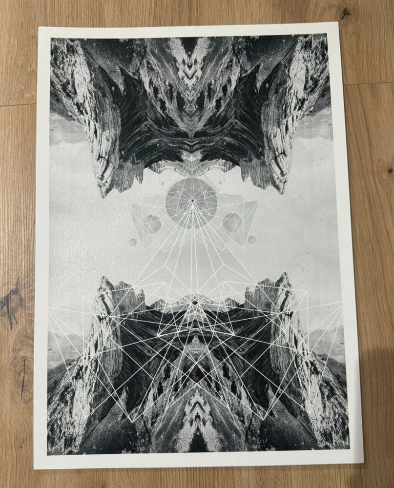 3 geometric, abstract print by Leif Podhajsky, the same artist who has worked for artists such as Tame Impala, Lady Gaga, and more. The prints were limited edition and are no longer being made, making them rare. 41.5cm x 29.5cm