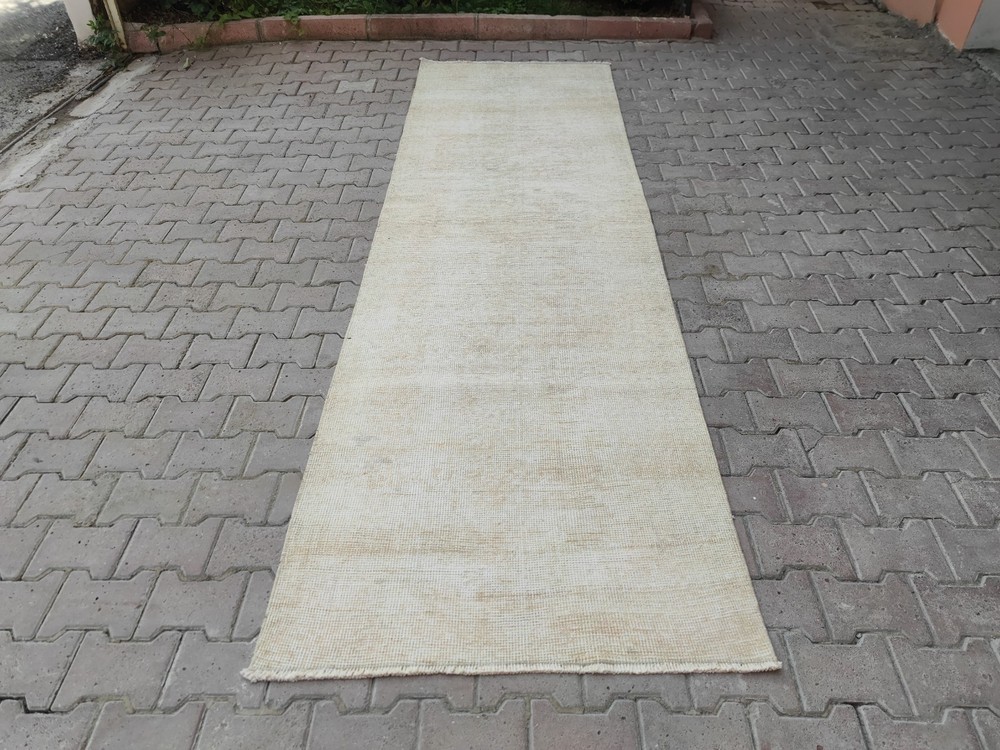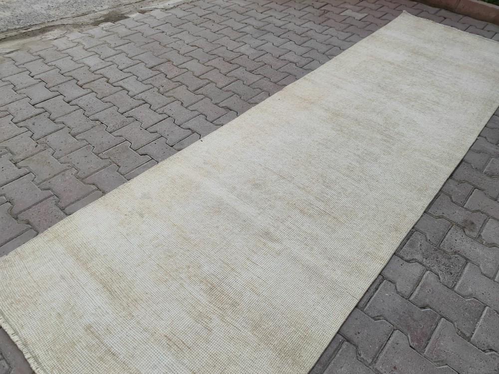 Sweet Product Story Indulge in the timeless charm of this Vintage Runner Rug , a stunning Turkish Runner that whispers stories of Anatolian heritage and artistry. Handwoven decades ago by skilled Turkish artisans, its soft Neutral Rug palette of elegant blue and white tones exudes understated luxury, perfect for sophisticated interiors. This masterpiece is not merely a floor covering; it’s a slice of history, adding depth and soul to your living space. As trends come and go, a genuine Turkish Runner Rug remains a lasting investment—a piece that sparks conversations and transforms your home into an artistic sanctuary. Whether styled in modern minimalism or eclectic Bohemian Rugs decor, it effortlessly blends in, yet stands out. Production Process (Craftsmanship & Techniques) Every inch of this exquisite Handmade Runner Rug was created using traditional Oushak weaving techniques passed down through generations. Looms echo with rhythmic movement as artisans tie each knot with precision and patience, ensuring lasting durability and unique artistry. This is not machine-made; it’s human touch woven into art. The Wool Rug is dyed using natural vegetal pigments, giving it a sophisticated, muted finish that ages gracefully over time. The slightly distressed look—a signature feature of Vintage Rugs —creates a soulful patina that modern reproductions can never replicate. Materials Used 100% High-Quality Wool Pile Cotton Foundation Product Dimensions Metric: 102 x 340 cm ( 3,3 x 11,1 feet ) Usage & Care Instructions Vacuum gently without a beater bar. Rotate the rug every few months for even wear. Spot clean spills immediately with a damp cloth. For deep cleaning, consult a professional specializing in Vintage Rugs . Avoid prolonged direct sunlight to preserve natural dyes. Processing Time Your rug ships within 1-3 business days after your payment is received. We take pride in secure and careful packaging to ensure your Decorative Runner Rug arrives in pristine condition. Return Policy We gladly accept returns or exchanges if you wish to return your item for any reason. Please contact us within 14 days of delivery and ship items back within 30 days. Buyers are responsible for return shipping costs unless the item arrives damaged or faulty. If the item is not returned in its original condition, the buyer is responsible for any loss in value. If your package arrives damaged, please photograph it immediately and contact us so we can arrange a replacement or refund. Important Information Each Vintage Handmade Runner Rug is entirely unique and crafted by hand. If you order more than one piece, please note that subtle differences in color tones, shapes, and measurements may occur. These variations are not flaws but an inherent part of the artistry and individuality of genuine vintage works. Other Details Please feel free to message us with any questions about this Hallway Runner Rug or any other listings. We respond promptly despite any time zone differences. Interested in custom or wholesale orders? Drop us a message! ⭐ We offer discount coupons for buyers who leave a 5-star review. Your satisfaction means everything to us.