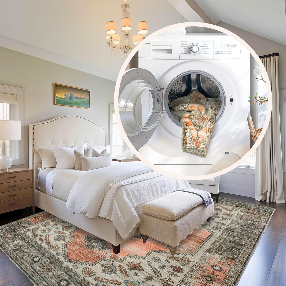 Introducing our SpinClean Machine Washable Collection, the ultimate blend of style, convenience, and practicality for any home. Designed with today's busy lifestyles in mind, this rug is more than just a beautiful addition to your space—it's a game-changer in home maintenance and comfort. SpinClean washable rugs are fully machine washable, making this a child-safe and pet-safe rug as well as the perfect high-traffic area rug. Gone are the days of worrying about spills and stains; simply place your rug in the washing machine, and it will come out looking as good as new. The ease of cleaning not only saves you time but also extends the life of your rug, ensuring that it remains a stylish feature in your home for years to come. Whether you're looking to add a pop of color with a living room rug, a touch of warmth to your bedroom, an inviting front door rug, or a functional runner for your kitchen, our collection has you covered. It’s machine washable and stain-resistant features, combined with a non-slip backing, make it an ideal choice for any home. Need a hall rug to enhance your hallway's look? Or perhaps a grey and white area rug to elevate your modern decor, these rugs offer versatility in any space. The SpinClean collection is proof that you don't have to break the bank to achieve a stylish, comfortable, and low-maintenance home environment. Stylish and Practical: The SpinClean Machine Washable Collection offers an affordable, low-maintenance solution without compromising on style. This collection features a wide array of designs, from vintage to southwestern, boho, abstract, and modern geometric. Machine Washable for Easy Care: Maintaining this rug is a breeze with regular vacuuming and spot cleaning to preserve its beauty. For tougher stains, just toss your rug in the washing machine on a gentle cycle with cold water. We recommend line drying or using the air-only drying cycle without heat. Designed for Every Room: This area rug is kid and pet-friendly, making it ideal for any space in your home that needs an elevated touch. It ensures lasting style in your living room, bedroom, dining room, kitchen, bathroom, home office, dorm room, as a hall runner or entrance rug. Sleek and Functional Pile Height: The low pile of this area rug brings a sleek, sophisticated touch while being easy to clean and maintain. Designed to be placed conveniently under furniture and doorways or as an indoor entrance rug, this is the perfect high traffic rug for your home. Stain-Resistant Material: Our machine washable rugs are crafted from synthetic materials that are stain-resistant, lightweight, and easy to clean. The stain-resistant properties ensure that the rug maintains its vibrant colors and patterns, even after enduring the demands of everyday use. If your rug is located in an area that receives direct sunlight, regularly rotate your rug to maintain its appearance. Durable Design with Non-Slip Backing: This rug’s power-loomed design is made to endure everyday wear and tear, ensuring long-lasting durability. The integrated non-slip backing keeps the rug securely in place while the reinforced, quality-stitched edges enhance its resilience. For added comfort, pair it with one of our rug pads for an extra cushioned feel underfoot.