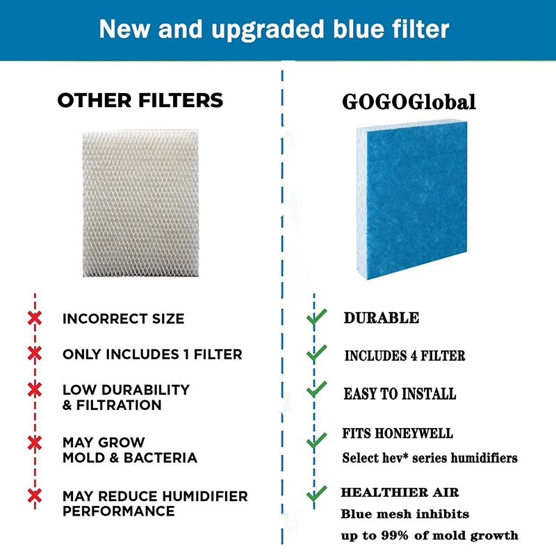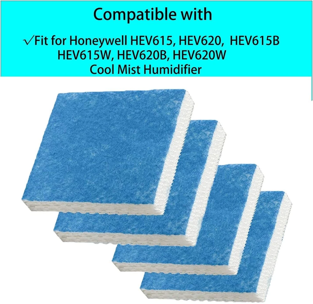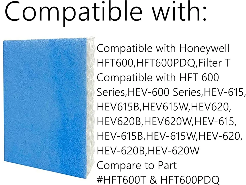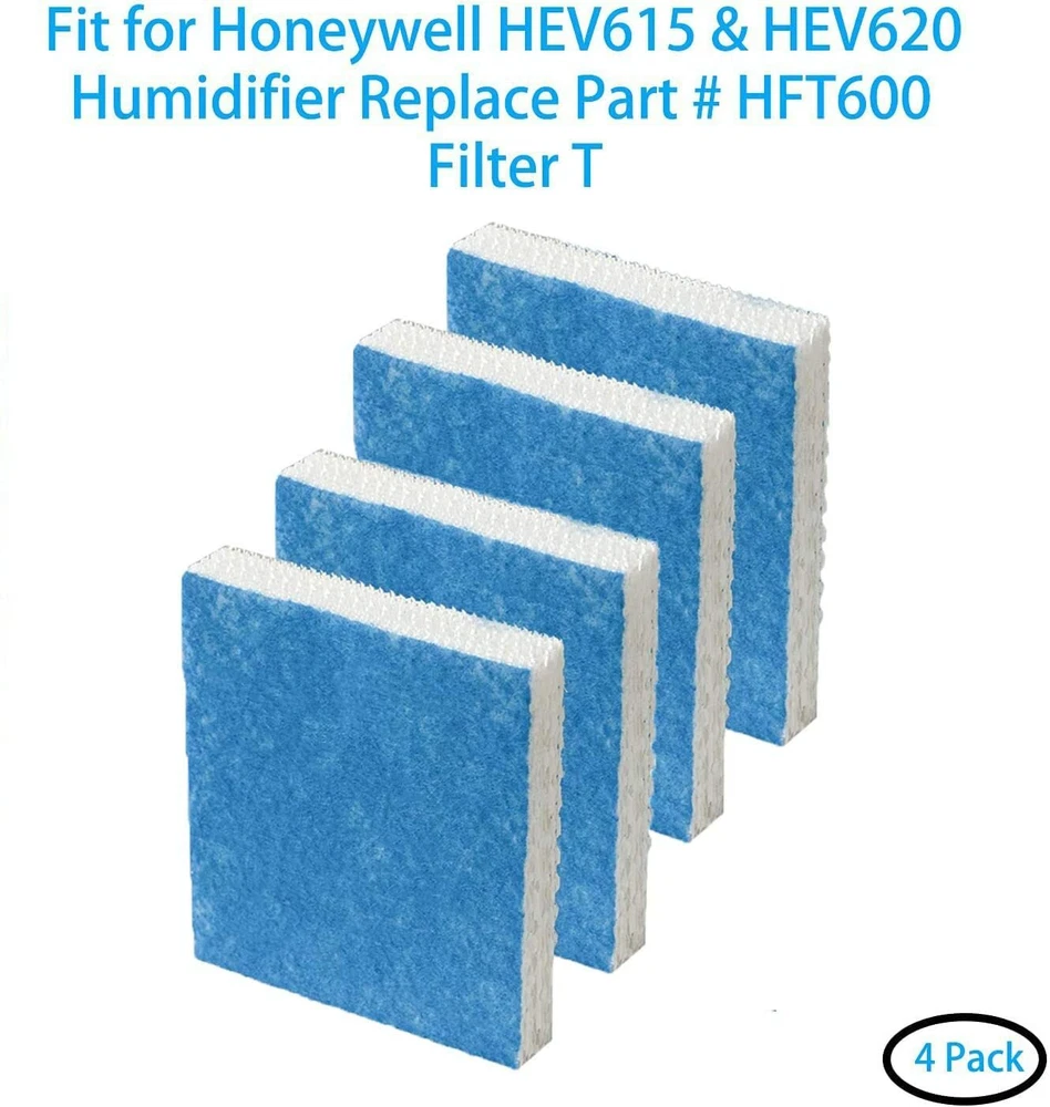 Features: Fit Model: Replace for Honeywell HFT600T HFT600PDQ HEV615, HEV615B, HEV615W, HEV620, HEV620B, HEV620W, HEV-615, HEV-615B, HEV-615W, HEV-620, HEV-620B, HEV-620W. Made of high-strength eco-friendly materials, durable If you are tired of changing so many humidifier filters every season and wish you could get one that you can wash, clean, and reuse over and over again, you have found the right product! Made from high-quality, durable material with an upgraded filter design to both filter large particles and maximize moisture output Tips For Daily Use: For best results, flip your T filter daily and only fill humidifier tank with distilled water. Hard water degrades filters and yellows them prematurely Installation Instructions: Soak your replacement wick for Honeywell T Filter for humidifier HEV615 and HEV620 in cool water before replacing to ensure uninterrupted moisture output. Place in filter housing with blue layer facing outwards (towards you) Specification: Compare to part # HFT600T & HFT600PDQ Fit model: For Honeywell HFT600 Series, HEV-600 Series: HEV615, HEV615B, HEV615W, HEV620, HEV620B, HEV620W, HEV-615, HEV-615B, HEV-615W, HEV-620, HEV-620B, HEV-620W Size: 7.67*6 inch (Approx.) Colour:Blue+white Material:Wood pulp paper Package Included: 4pcs Humidifier Wick Filter OR 8pcs Humidifier Wick Filter