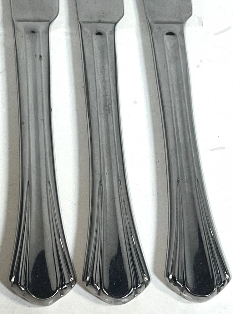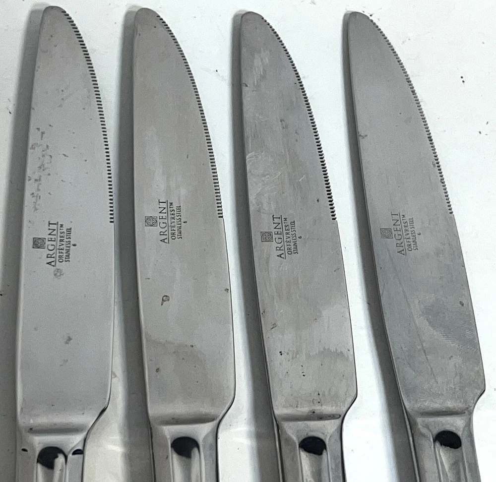 Lot of 4 Argent Orfevres GERTRUDE Hampton Silversmith Stainless Steel 9.5" Long French Solid Dinner Knives. Good gently used condition with some minor normal usage wear including some light scratches, see pics.