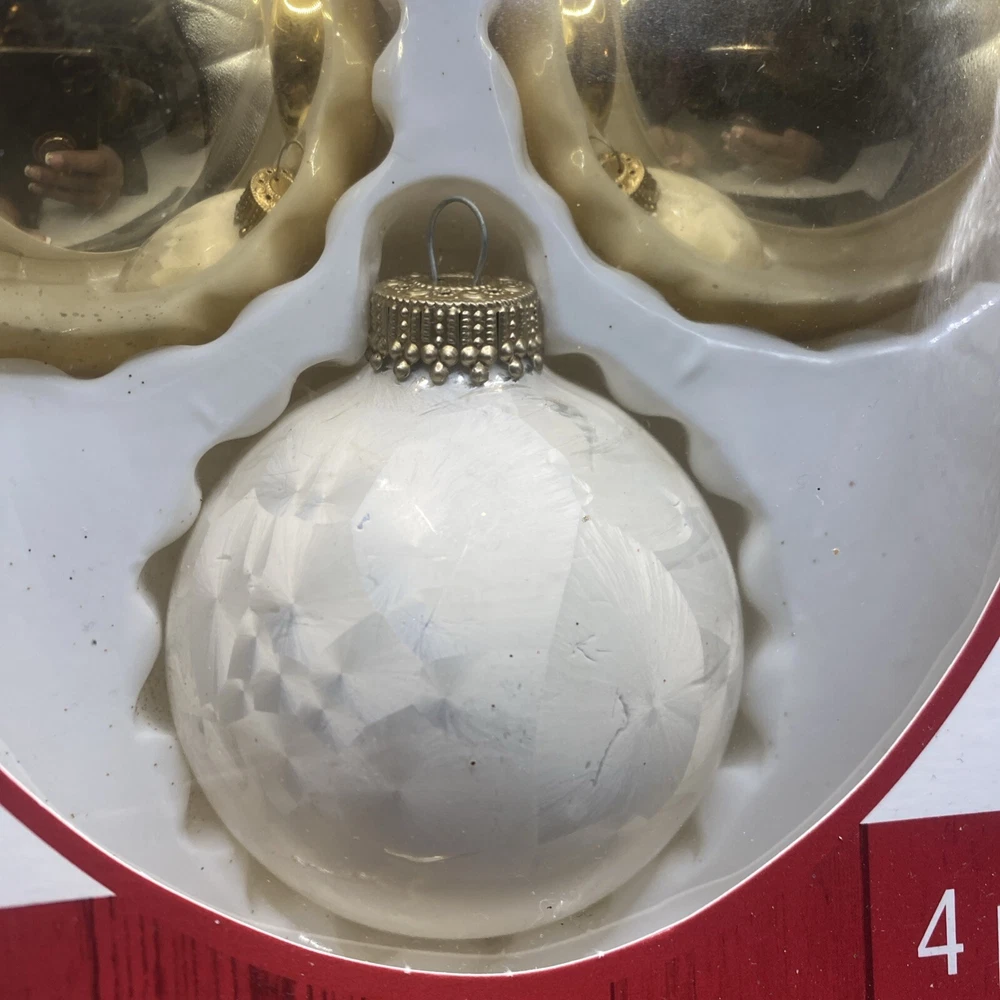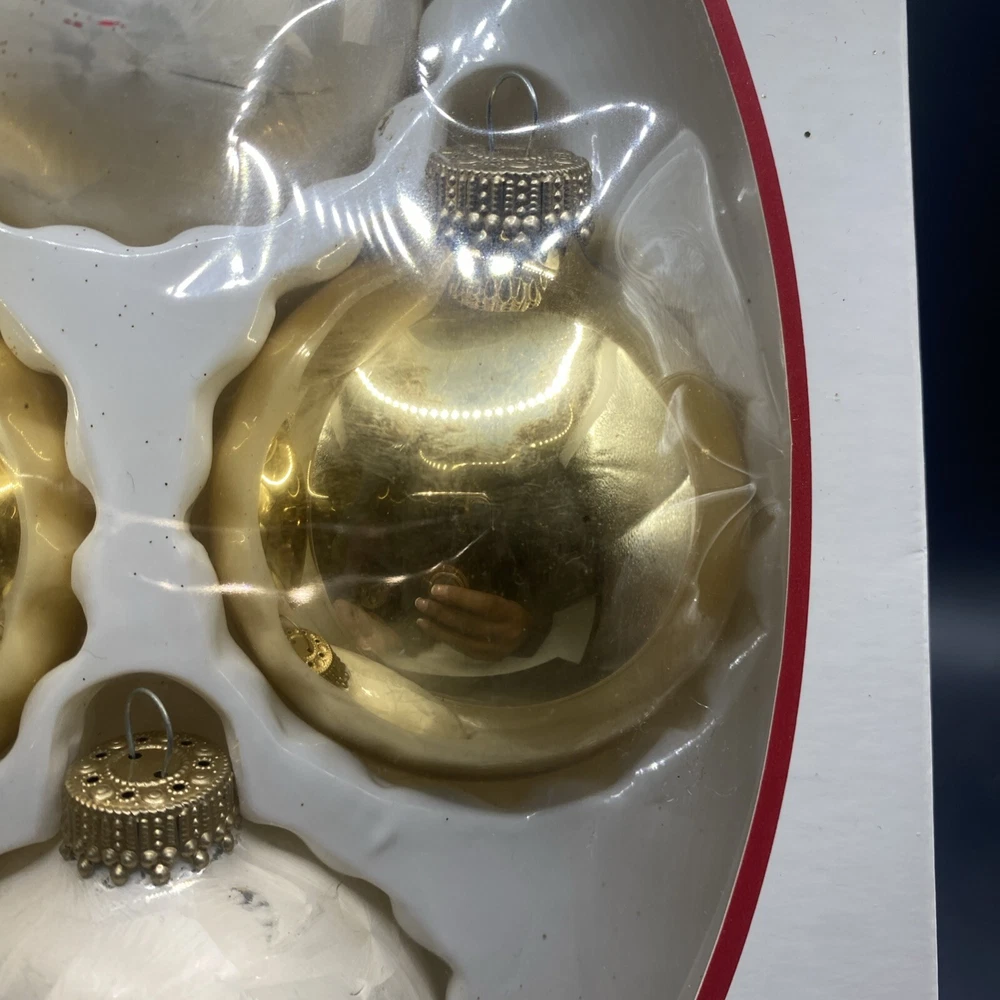 Add a touch of vintage glamour to your holiday decor with this set of 16 sparkling glass ornaments from Celebrate It. The round ornaments feature a beautiful white and gold color scheme with red glitter accents, perfect for adding a pop of color to your Christmas tree. The set includes medium-sized ornaments, each hand-blown with precision and care. These ornaments are not just beautiful but also unique, with a boxing theme and a subject of winter trees. They come in their original packaging and are perfect for collectors or anyone looking to add some vintage sparkle to their holiday decor. Don't miss out on this opportunity to own a piece of holiday history!
