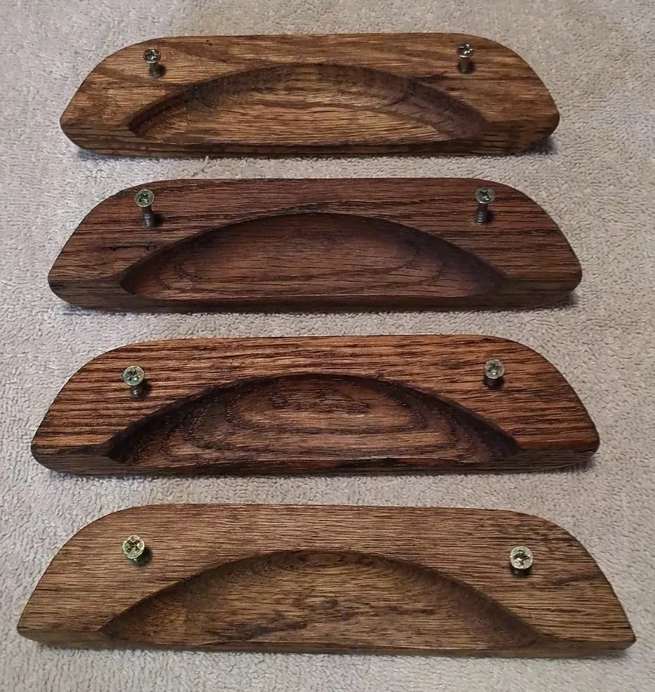 4 Carved Wood Furniture Oak Desk Drawer Pulls Handles Wood Cabinet Pulls 7". Condition is Used. Shipped with USPS Ground Advantage.