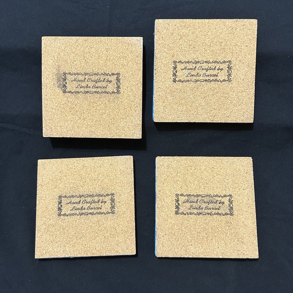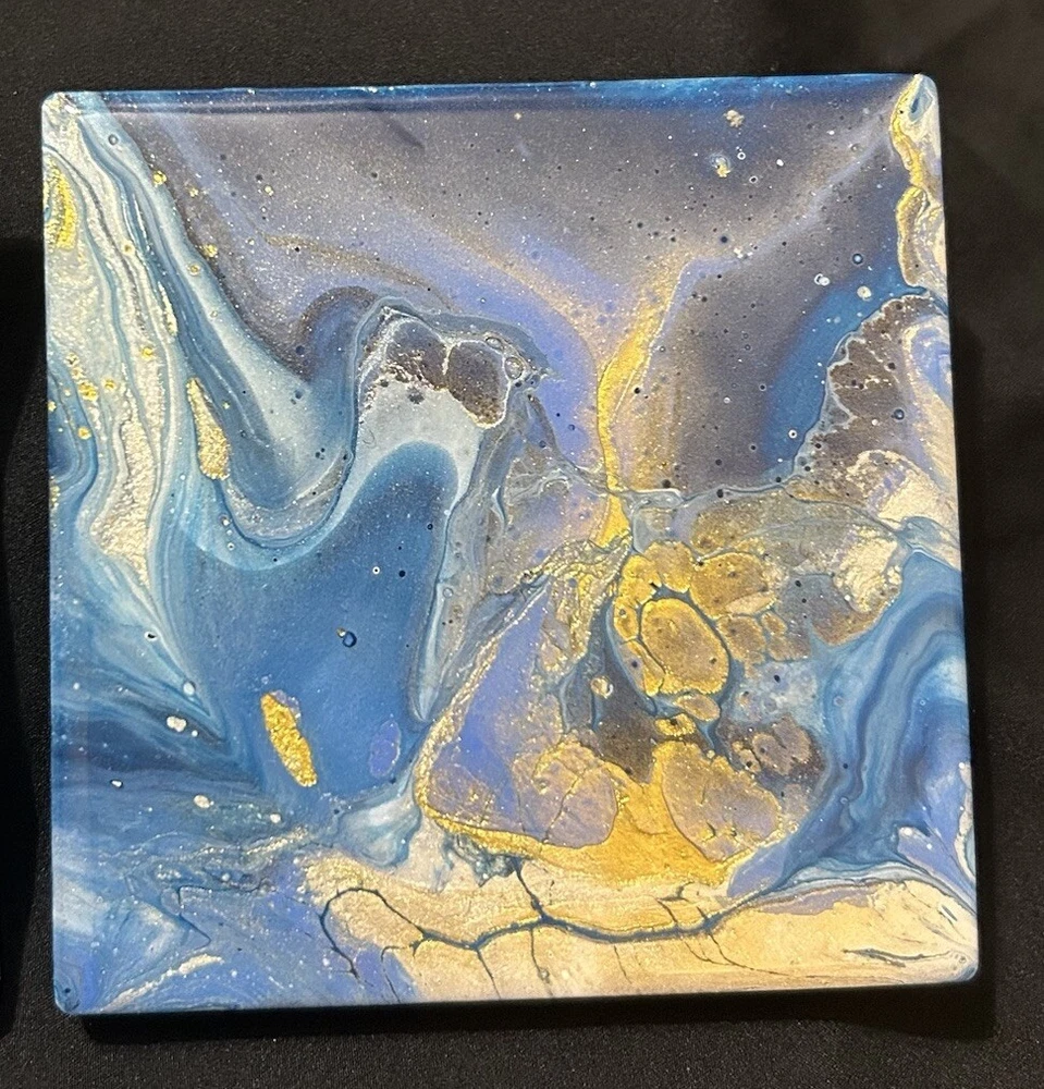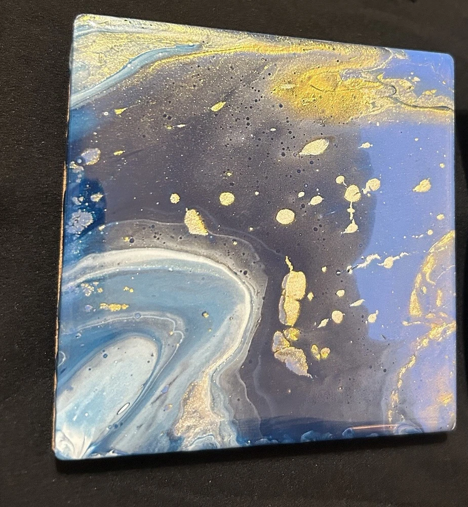 4 Cosmic Swirls Coasters 4” Blue Golden Hand Crafter Resin By Linda Burcel Water Good used condition. Minimal signs of wear and tear. Please study pictures carefully before purchasing Feel free to ask any questions. Thank you for visiting our store! 10