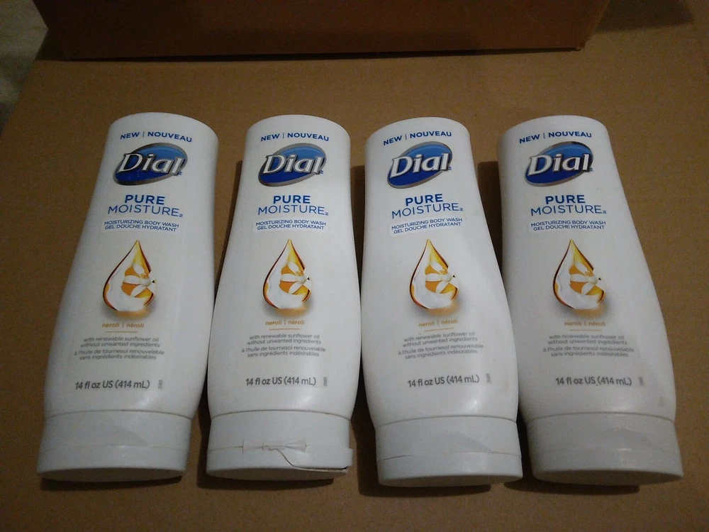 (3) Dial Pure Moisture Neroli Moisturizing Body Wash W/Sunflower Oil-14oz. Each. BOTTLES DO HAVE CRACKED LIDS PLEASE LOOK AT PICTURES THANKS