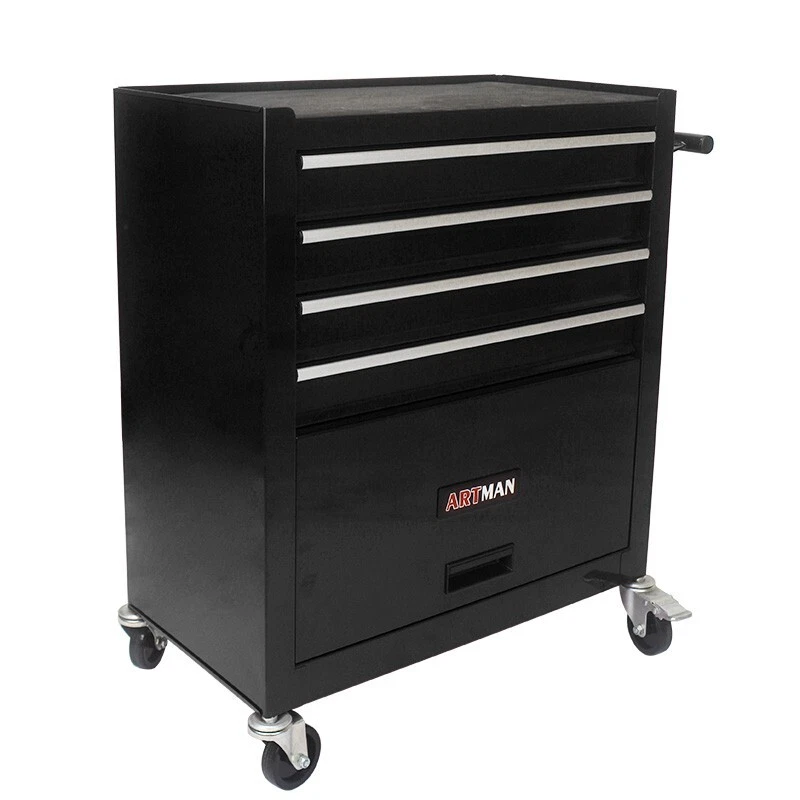 About this item: The mobile workshop trolley impresses with 4 drawers tool set The ARTMAN tool trolley is equipped with a total of 4 drawers and a large storage space on bottom. The tool trolley have interlock safe system(each time can only open one drawer.)The tool box is also lockable and can be used as a removable, attachable and mobile case attachment The opening and closing of the drawers of the tool cabinet is very gentle thanks to the ball-bearing drawers. The robust and powder-coated steel construction is used for high wear resistance. This assembly trolley has 4 steering wheels, 2 of which with parking brakes, so you can move the trolley freely in the garage, but also stop in one place Specification: Color:Red / Black / Blue Material: Cold Rolled Steel Surface Finish: Powder Coating Bottom Dimension: L616mm(24.25inch)*W330mm(13inch)*H745mm(29.33inch) Drawers Dimension: L511mm(20.11inch)*W304mm(12inch)*H85mm(3.34inch) Bottom space Dimension: L610mm(24inch)*W330mm(13inch)*H360mm(14.17inch) Weight (lbs): 41.90 Package Content: 1× 4 drawers Workshop tool tool 1× Manual