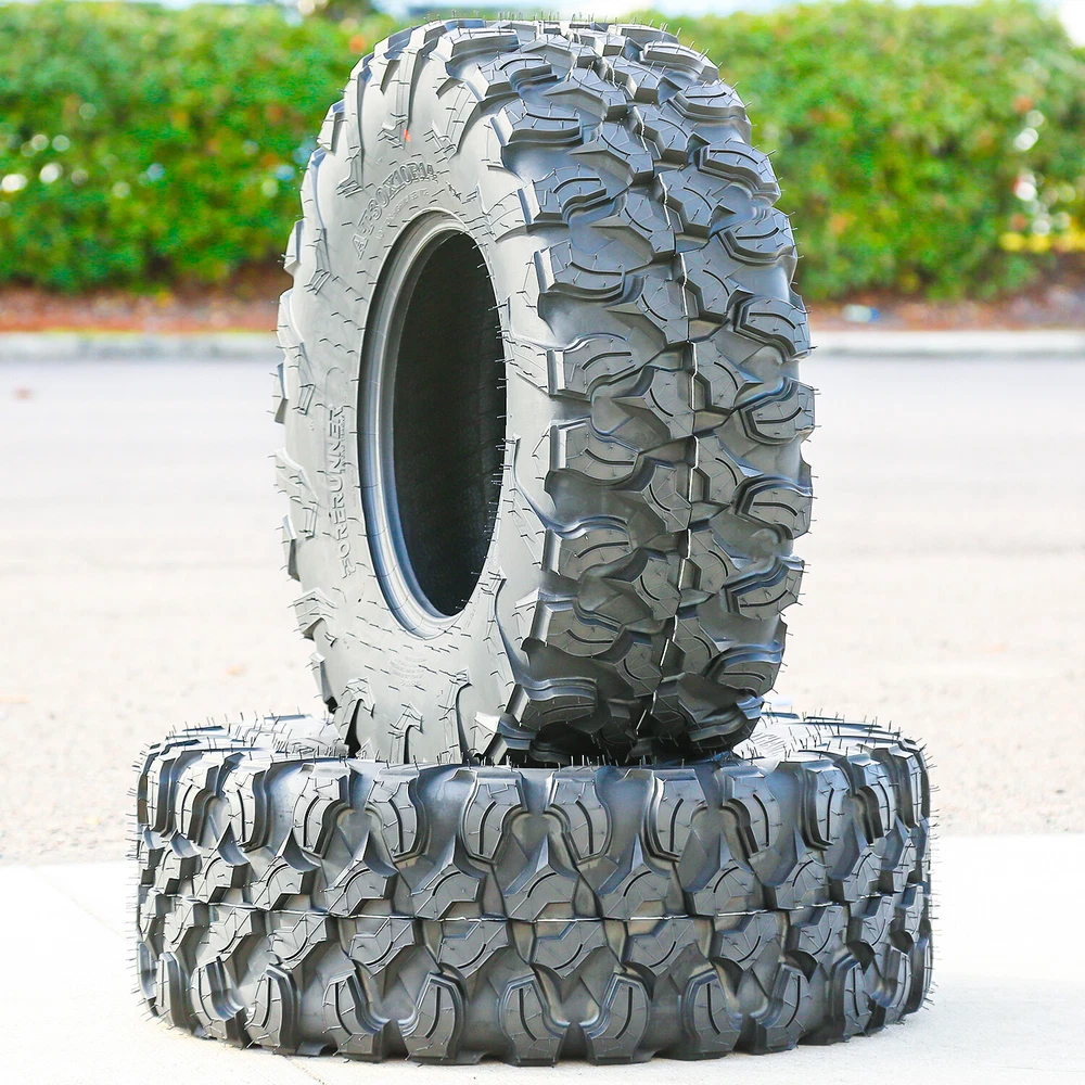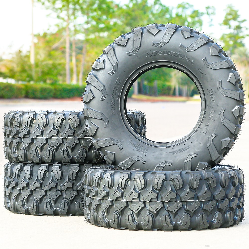 Forerunner Gotham A/T FEATURES AND BENEFITS All terrain traction Better damage resistance Improved controllability OVERVIEW The Forerunner Gotham A/T is an all terrain, all season tire made for ATVs and UTVs. When it comes to ATV tires, there might be slight visual differences between brands and models even if the tires are of the same size. NOT FOR HIGHWAY USE: This tire model is not DOT-approved for highway use. Shop Deals Feedback Contact Us Forerunner Gotham A/T *Tread pattern & sidewall design may vary from pictures Specifications Brand Forerunner Model Gotham A/T Size 30X10.00R14 Section Width 10.00 Aspect Ratio N/A Tire Height 30 Rim Diameter 14 Run Flat No Season All Season Performance All Terrain Car Type ATV & UTV Sidewall BSW: Black Side Wall Load Index 79 Speed Rating J Load Range 8 Ply Overall Diameter 30 Tread Depth 17/32 UTQG N/A Rebate Available No Seller Notes New SKU N1550986-99-4 Product Description Attention! Due to the size of the tires, Packages might be SEPARATED in the courier facility and not be DELIVERED on the SAME DAY, even though we do ship them together. Tracking information can be checked by logging on to the courier website with the master tracking number you will receive via email. For example, you can receive 3 tires in one day and the 4th one the next day or the day after, or one tire in one day and the second one day after. We understand that this is a big inconvenience for our buyers, however, this is ABSOLUTELY out of our control. Forerunner Gotham A/T FEATURES AND BENEFITS All terrain traction Better damage resistance Improved controllability OVERVIEW The Forerunner Gotham A/T is an all terrain, all season tire made for ATVs and UTVs. Exceptional handling and maneuvering are promoted with this model. The aggressive tread design, with the large tread elements, and its constant surface contact, enhances steering responsiveness and driving stability. The steering response time is faster and more precise to the driver's instructions, while the structure is secured against driving pressure. The aggressive tread design and the shoulder blocks boost cornering and maneuvering. These tread elements enable the tire's constant forward motion on versatile terrain traction. The special tread design and the durable compound enable the driver to have full control over the vehicle on all terrain drives. Excellent all terrain traction is prompted with this tire. The tread design features staggered blocks and wide grooves, which boost its all terrain traction. These tread elements optimize its on-road and soft, loose, and uneven terrain grip. This is achieved as the tread provides the necessary surface grip. The footprint eliminates mud, snow, and rocks stuck between the tread elements. In other words, mud and snow do not block the surface contact, while stone retention is actively prevented. The Forerunner Gotham A/T offers a secure performance with better damage resistance. The reinforced sidewall and the special compound blend protect the tire from tread and casing damage. The construction avoids punctures, cuts, and impact damage, while the rubber materials resist the tread's chipping, cracking, and tearing. Their combination effectively improves its driving safety levels. When it comes to ATV tires, there might be slight visual differences between brands and models even if the tires are of the same size. NOT FOR HIGHWAY USE: This tire model is not DOT-approved for highway use. Manufacturers recommend changing tires every 10 years. As long as tires are properly stored before they are sold, the year of their manufacture will not shorten their service life. RIM NOT INCLUDED Shipping FAST AND FREE SHIPPING FREE SHIPPING within the lower 48 contiguous States. All orders are shipped with FedEx Ground/Home Delivery. FedEx requires a physical address. We cannot ship to PO BOX, APO, FPO, HI, AK, PR, GU or VI addresses. All Orders placed before 12PM EST (Eastern Standard Time) will be shipped out the SAME DAY. FedEx does not pick up orders on weekends and national holidays. The average delivery time ranges between 1-6 business days. Signature Required delivery will not be processed automatically. Please contact us directly to request Signature Required delivery. Special delivery instructions cannot be provided as FedEx is not able to process them. For Buyers from Missouri or if the order is shipped to Missouri a 4.225% MO sales tax will apply. Sales tax for products that are being shipped to other states is collected and remitted by eBay. For more information see article "Taxes and import charges" Tracking information is made available to the Buyer after an Order is shipped. As the supply chain network is still disrupted due to the current worldwide situation, we're doing everything within our power to ensure orders are shipped as quickly as possible. However, despite our best efforts, shipping and delivery times may change unexpectedly. Please check your Order Status for the most current estimate of the shipping time. Thank you for your patience and understanding. RETURNS EASY NO HASSLE NINETY (90) DAY CUSTOMER SATISFACTION 90 DAYS: We accept Returns within a 90-day period! FULL REFUND: No Restocking Fee will be applied and a Full Refund will be provided if the Item is returned in unused condition. FREE RETURN: Unsatisfied for any reason or just changed your mind? Contact us for help and a hassle-free formal Free Return! FULL ASSISTANCE: If the Item is incorrect, damaged or in any other way not as described, contact us for help! We always work with our Buyers to resolve any issue. By making a purchase, the Buyer agrees to the Production Year (if any) listed in the Item specifics. Prior to submitting the Order, the Buyer must verify that Item specifics are appropriate for their vehicle. Please make sure you are buying the correct Item by double-checking prior to placing an Order; if you need any help please contact our customer service team! By submitting the Order, the B
