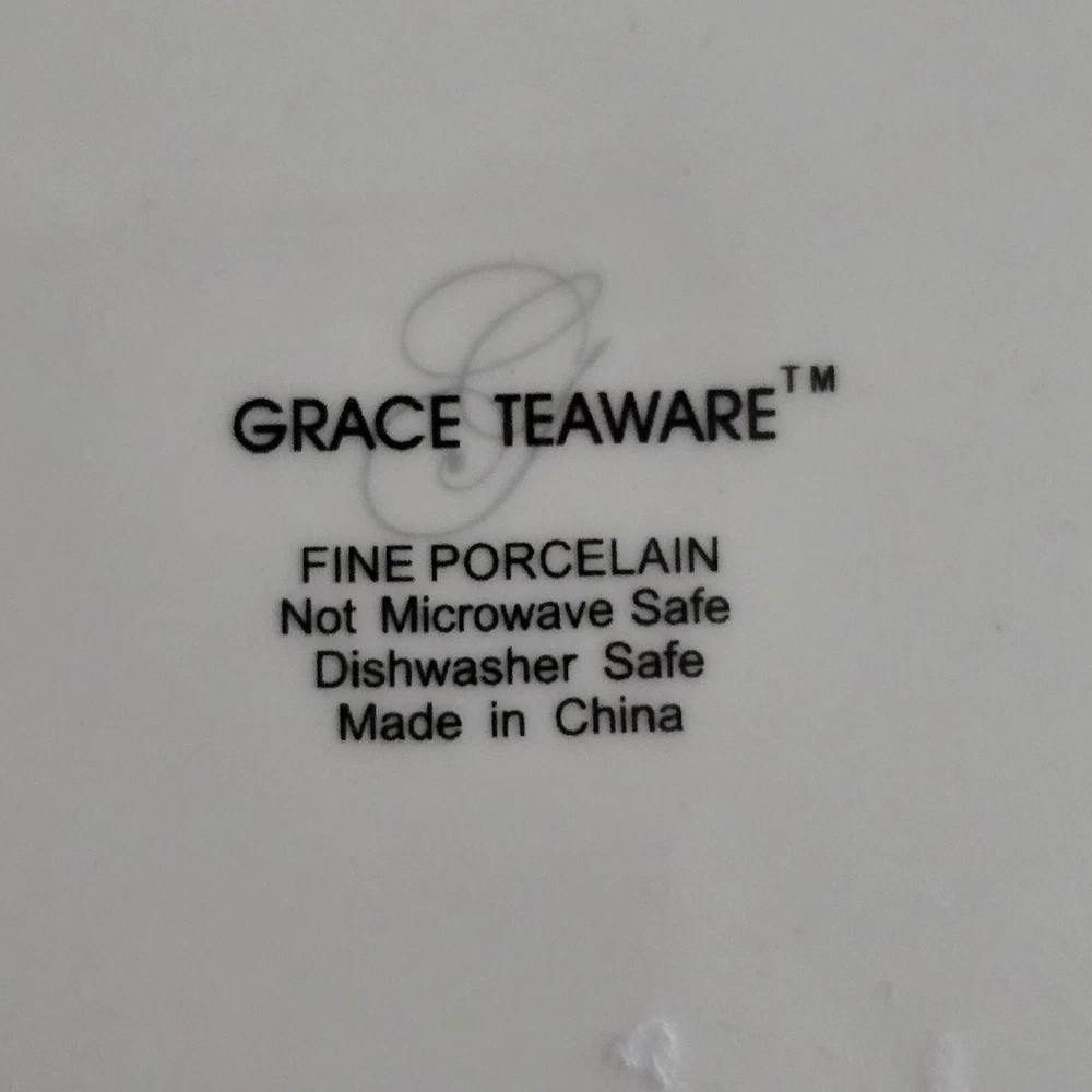 Add a touch of elegance to your dining table with this set of four Grace's Teaware dinner plates. The plates are crafted from high-quality porcelain in a beautiful sage green color with a shiny finish. Each plate measures 10.5 inches in diameter and features a scalloped edge design with gold accents that add a touch of luxury to your dining experience. These plates are perfect for all occasions, whether you're hosting a formal dinner party or a casual family gathering. They are dishwasher safe, making them easy to clean and maintain. The set includes four plates, each with the brand's signature design. Bring a touch of contemporary style to your table with these Grace's Teaware plates.
