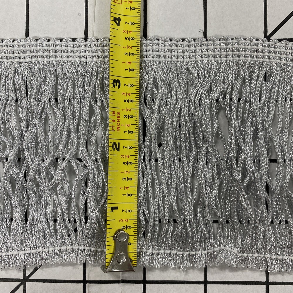 4” Grey Metallic Chainette Fringe Shawl Regalia Lampshade Costume Trim 5 Yds. This is new old stock from my personal sewing inventory. I have not used this type before so I have no past experience with its performance. Thanks!
