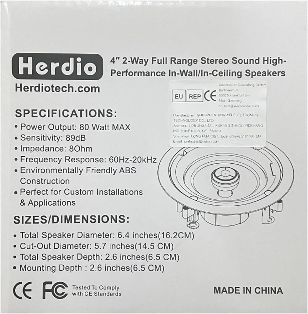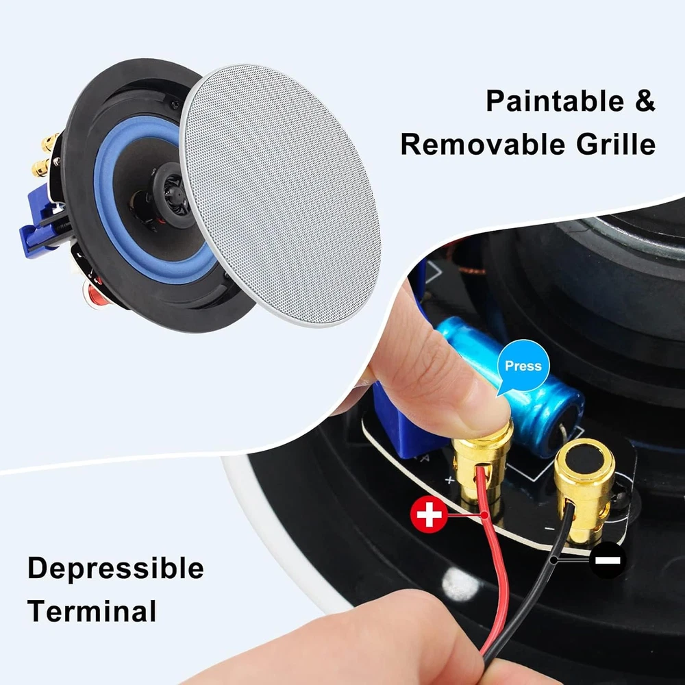 Store New Arrivals Add to Favorite View Feedback Contact 4 Inch 320 Watts 2-Way Bluetooth Ceiling Speakers Package Perfect for Home Theater System, Living Room,Office,Flush Mount(4 Speakers) Description Item model number B08SHV7YK5 Signal-to-Noise Ratio 89 dB Number of Items 4 Power Source Corded Electric Control Method App Warranty Type Full Tweeter Diameter 1 Inches Woofer Diameter 4 Inches Bluetooth Range 100 Feet Controller Type Button Unit Count 4 Count Speaker Size 4 Inches Wireless Communication Technology Bluetooth Material Polypropylene, Silk dome Includes MP3 player? No Package Type Standard Packaging Age Range (Description) Adult Audio Driver Type Dynamic Driver Recommended Uses For Product Kitchen Specific Uses For Product Home Theaters, Bathrooms, Offices, Kitchens Included Components 4* 4 Inch Ceiling Speaker, 4* Speaker Cable, 1* Wall Amplifier, 1* Power Adapter (Supplied by your country), 1* Manual Model Name HCS 418-16BTX2 Subwoofer Connectivity Technology Wireless Speaker Maximum Output Power 320 Watts Connectivity Protocol Bluetooth Item Weight 7.32 pounds Connectivity Technology Bluetooth Special Feature Waterproof, Stereo pairing Mounting Type Ceiling Mount,Wall Mount Color White Compatible Devices Smartphone, Tablet, Laptop, Desktop Speaker Type Woofer Maximum Range 40 Meters Is Waterproof FALSE Subwoofer Diameter 10.2 Centimeters Audio Output Mode Stereo Audio Driver Size 10.16 Centimeters Product Dimensions 6.4"D x 6.4"W x 2.6"H Wireless Serise Connection:4 channel Bluetooth amplifiers lets you pair 4 speakers for a powerful surround sound. simple and easy to use 100FT RANGE:Advanced 5.0 ensures more stable and instant pairing compared to 4.2 and lower; maintains a strong connection up to 100 ft unobstructed away from your device; 3.5mm aux in jack for connecting devices Flush Mount Desgin:Compact flush mount design for simple easy installation in-wall / in-ceiling , or pre-cut speaker openings, for in home use, office, professional, or custom audio applications on any flat surface. Dimensions: Total Speaker Diameter: 6.4 Inch Cut Out Diameter: 5.7 Inches Total Speaker Depth: 2.6 Inches Mounting Depth: 2.6 Inches What's In the Box: 4 Inch Ceiling Speakers X4, 4 Channel Amplifier X1 , 5M Speaker Cable X2, 3A Power AdapterX1 Product Description The video showcases the product in use. The video guides you through product setup. The video compares multiple products. The video shows the product being unpacked. 1 BENEFITS 2 SPECIFICATIONS 3 WIRING DIAGRAM Pivoting Silk Dome Tweeter The 1-inch silk dome tweeter generates abundant detail and clarity, Pivoting design means the tweeter can be aimed for a spacious sound stage. 4 inch poly woofer Small speakers with a big sound. Quick and Easy Installation: Easy to attach or remove for quick installation. No need for expensive professional installation. Flush Mount Design: Compact flush mount design for simple easy installation in-wall / in-ceiling, for indoor/ Covered patio , office, on any flat surface. 1 Perfect use for 2 what's in the box Bluetooth Ceiling Speakers(2 Pairs) Sold as Pair 2 Pairs Sold as Pair 2 Pairs Sold as Pair 2 Pairs Speaker Size 4 inch Speaker Size 6.5 inch Speaker Size 5.25 inch Max Power Output(Each) 80 Watt (Each) Max Power Output(Each) 150 Watt (Each) Max Power Output(Each) 150 Watt (Each) ABOUT US We offer the best prices around on high quality products. Our E-store includes media such as books, movies, music and games while offering electronics, toys, sporting apparel, clothing, tools, general home, garden items and more. SHIPPING We are always working hard to ensure your package arrives as soon as possible. Please understand that some factors like weather, high postal traffic, and the performance of shipping companies are outside of our control. We offer free shipping to the lower 48 states and ship within 2 business days of payment, usually sooner. We do not accept P.O. Boxes. Please provide a physical address. For shipping outside of the continental USA, we only use eBay's Global Shipping Program.The item is shipped to KY and then sent to the rest of the world. International customers are responsible for all duties and taxes. Continue to check out in order to calculate costs for shipping the item to your country. Messages regarding eBay's Global Shipping Program MUST be directed at eBay EXCLUSIVELY. RETURNS We offer a 30-Day Return Policy on items which you are not completely satisfied with. You have the option for a full-refund or an exchange of the item. No returns are available on items shipped outside of the USA. PAYMENT We accept PayPal. CONTACT US This page content is yet to come Please ad us to your favorite seller and visit again later Thank You CUSTOMER SATISFACTION We try our very best to make sure every customer is completely satisfied. If there's a problem, message us! We're happy to help. WE ACCEPT Copyright © 2021 AutoDS. | All Rights Reserved