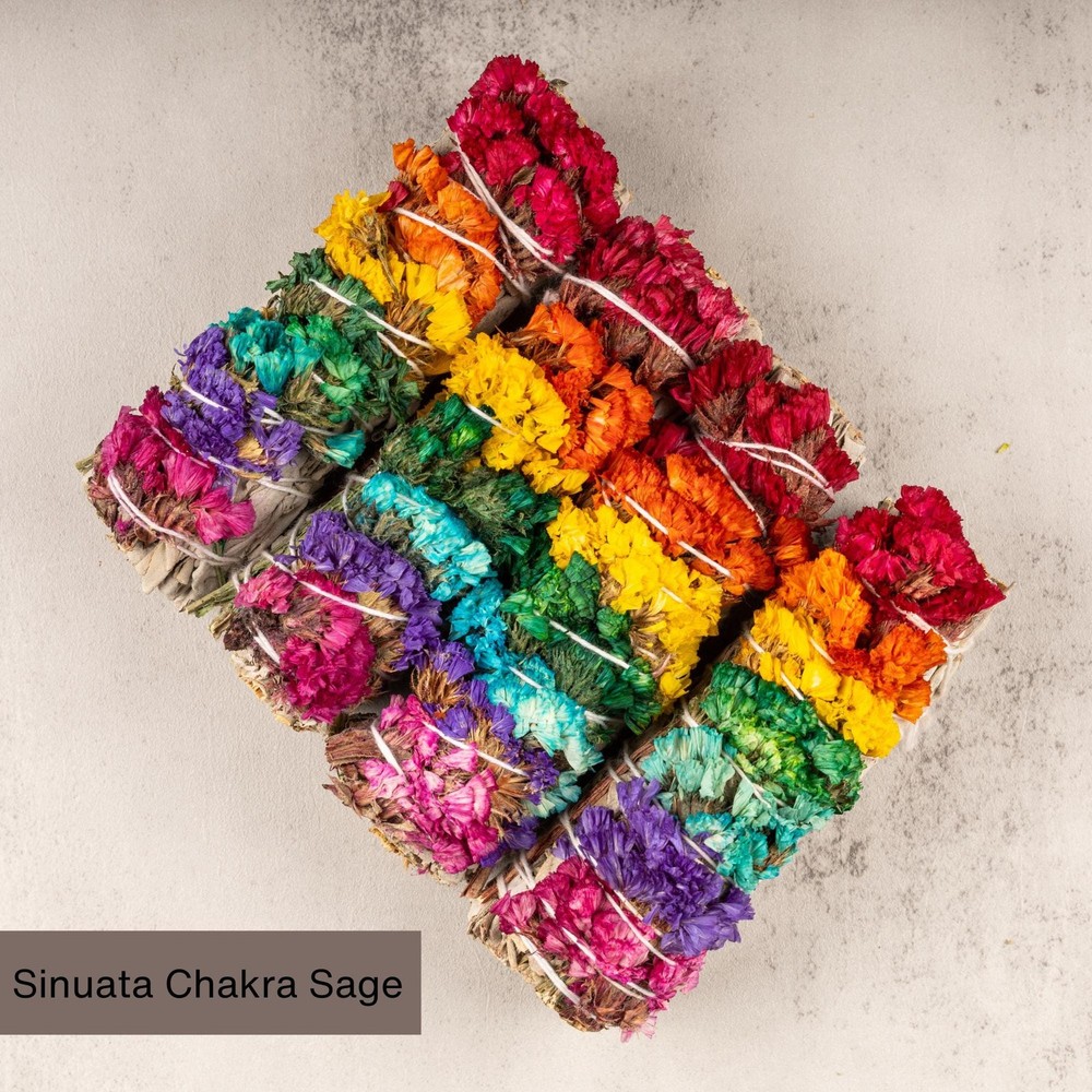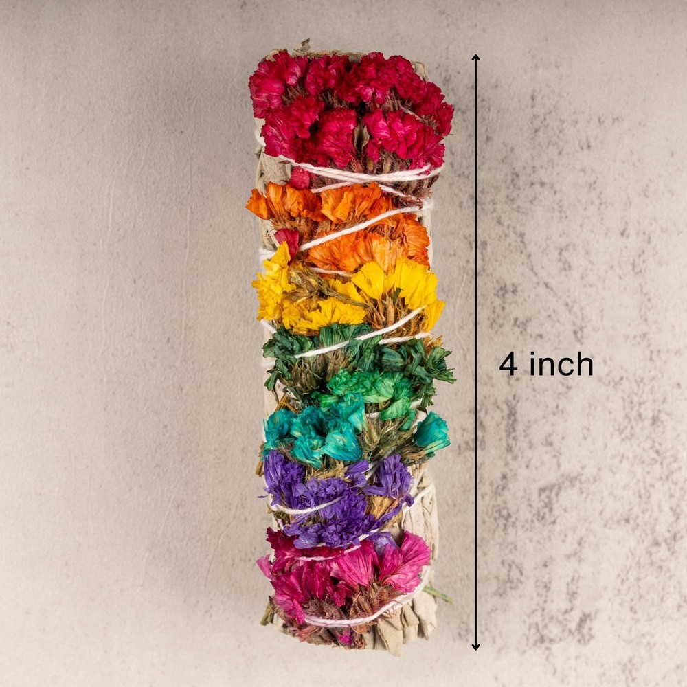PURE PURIFICATION: Immerse yourself in the ancient ritual of purification and cleansing with our premium Chakra White Sage Smudge with sinuata flowers, renowned for its unparalleled ability to clear negative energy and restore harmony to your space. GUARDIAN OF LIGHT: Harness the spiritual protection of 7 Chakra White Sage as it envelops your surroundings, creating a shield against negative influences and fostering a sanctuary of positivity and serenity. CAPTIVATING AROMA: Elevate your space with the captivating fragrance of our Chakra White Sage Smudge Stick, creating an irresistible atmosphere that enhances your smudging experience and leaves a lasting impression of purity and renewal. NATURAL ENERGETIC RESET: Let the cleansing power of Chakra White Sage smudging be your guide as it sweeps away stagnant energy, leaving behind a renewed sense of clarity, balance, and vitality in your home, office, or sacred space. CRAFTED FOR CONSCIOUS LIVING: Our White Sage Smudge Stick is handcrafted with care and reverence, sourced ethically to ensure the highest quality and potency, making it an essential tool for anyone seeking spiritual harmony and energetic alignment. Immerse yourself in the sacred tradition of smudging with our premium Chakra White Sage Smudge Stick with Sinuata Flowers. Crafted with care, its strong, resinous aroma purifies your space, uplifting your spirit and offering protection from negative energy. Ethically sourced and handcrafted, this sacred tool promotes mental clarity, emotional balance, and overall well-being. Elevate your spiritual practice and embrace the transformative power of White Sage today.