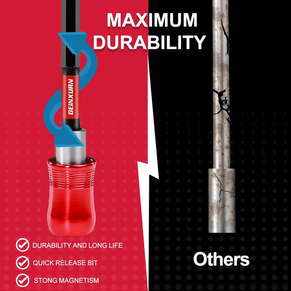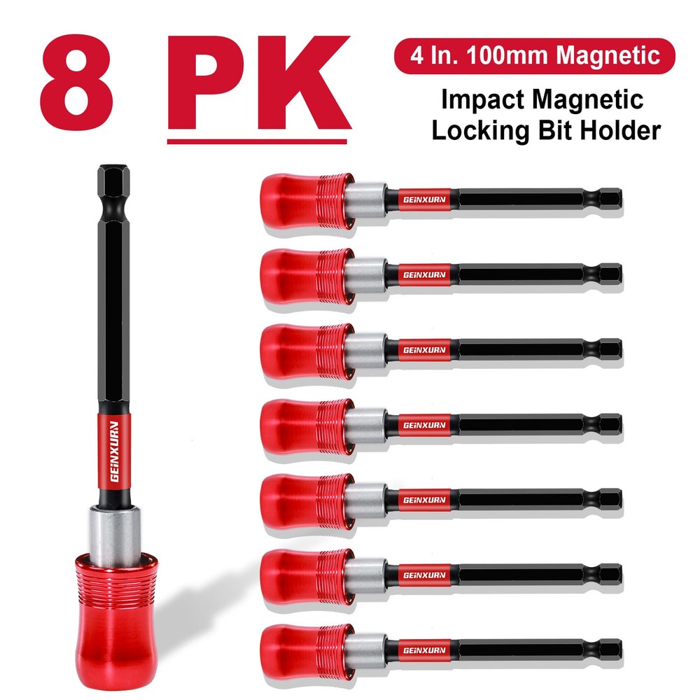 8Pack Bit Holder — Made of Cr-V Steel4inches(100mm) quick connect drill bit holder, Heat-treated manufacturing for increased durability. Quick change and release, very easy to use. High Precision — This extension bit shaft is very straight, it almost has no wobbling when you use it with impact screwdriver. Magnetic + Lock — The magnet is located inside the tube and Interface come with locking mechanism, securely holds the bits in place, reduces the possibility of wobble or fall out, ensures the accuracy of your power drill or other devices. Extend The Area of Bits — 1/4” Hex Shank and 4inches length, perfect for tight places which is hard to reach screws. Widely Used— Magnetic Extension Socket Drill Bit Holder,Universal fit electric screwdrivers, manual screwdrivers, T-handle 1/4" driver screwdrivers, corded drills, cordless drills, power drill, impact drivers or any other devices with 1/4 inch hex shank. Unlimited Uses in Automotive, Hardware, Hobby, Home, etc.