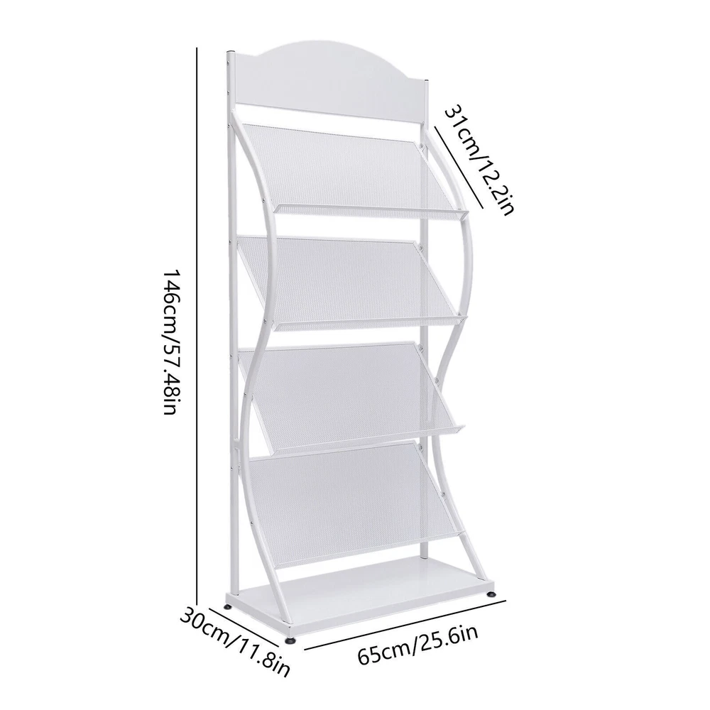 4 Layers Freestanding Magazine News Rack Office Display Organizer Metal Stand Description Are You Still Leaving Impurities and Journals Cluttered on Your Desk? Do You Look Forward to a Sleek, Solid, Large-capacity Floor-standing Magazine Rack to Help You Organize Your Magazines and Periodicals? Then Please Do Not Miss This Fashionable and Practical Floor-standing Magazine Rack. with This Floor-standing Magazine Rack, Your Office, Study, Living Room, and Bookstore Will Be Tidier! Key Features Sturdy and Durable : the Floor-standing Magazine Rack Is Made of High-quality Iron After Superb Welding, Which Is Very Sturdy and Durable. Large Capacity : the Four-layer Structure of the Floor-standing Magazine Rack Provides You with Enough Storage Space. Each Shelf Can Hold 2 A4 Manuals Side by Side at the Same Time. the Longer and Wider Shelves Can Hold up to 16 A4 Impurities per Tier. Excellent Weight-bearing Capacity : the Floor-standing Magazine Rack Thickened Iron Tube Provides a Maximum Weight-bearing Capacity of 33.06 Pounds per Tier. the Excellent Load-bearing Capacity Allows You to Use It with Peace of Mind. Convenient Access : the Floor Magazine Rack's Open Design and Proper Spacing Allow You to Get the Magazines You Want to Read at Your Fingertips. Display Function : the Floor-standing Magazine Rack's Tilted Shelves Allow Customers to Clearly See the Magazine Covers, Promoting Their Desire to Buy. Stylish Appearance : the Floor-standing Magazine Rack's Smooth S-shaped Lines and Elegant White Color Create a Stylish yet Classic Style. Such an Attractive Floor-standing Magazine Rack Is a Great Decoration for Any Place. Superb Craftsmanship : the Surface of the Floor-standing Magazine Rack Adopts Superb Sandblasting and Plastic Spraying Processes. the Sandblasting Brings a Smooth and Delicate Surface to It. Plastic Blasting Makes the Floor-standing Magazine Rack Wear-resistant and Corrosion-resistant . Strong Stability : the Unique S-shaped Iron Tube and Thickened Support bar of the Floor-standing Magazine Rack Provides Excellent Stability, Making It Solid and Non-shaky . Details Grid Design : Floor-standing Magazine Rack Shelves with Breathable Grid Design to Place Books, and Magazines Mold. and the Grid Design Can Increase the Friction with the Book so That It Is Not Easy to Fall. Nylon Anti-slip Feet : the Bottom Anti-slip Feet Are Made of Nylon, Which Can Prevent Slipping. and Nylon Cage Anti-slip Feet Can Protect the Floor from Scratches. Base : the Thickened Base Increases Both the Stability of the Floor-standing Magazine Rack and Its Placement Area. Advertising Board : the Top Billboard Can Be Diy According to Demand, Which Not Only Exercises the Hands-on Ability but Also Increases the Decorative Nature of the Floor-standing Magazine Rack. Galvanized Iron Screws : the Screws Are Made of Galvanized Iron and Are Made to Take into Account Laminations. Electroplated Screws Are More Durable and Can Extend the Life of the Floor-standing Magazine Rack. Application The Floor-standing Magazine Rack Is Suitable for Displaying and Storing Books, Impurities, Newspapers, Periodicals, Etc. Its Beautiful Shape and Large Capacity Make It Suitable for Homes, Bookstores, Libraries, Schools, Etc. Specification Model: 209 Material: Iron, Galvanized Iron Color: White Style: Minimalist, Industrial Mounting Type: Floor-standing Number of Layers: 4 Surface Treatment: Sandblasting, Spraying Process Single Shelf Capacity: 15kg/33.06lbs Gross Weight: 5kg/11.02lbs Package Size: 142*34*7cm/55.90*13.38*2.75in Product Size: 65*30*146cm/25.59*11.81*57.48in Advertising Board Size: 60.5*18cm/23.81*7.08in Single Board Size: 60.5*31cm/23.81*12.20in Installation Unscrew the Screws at Both Ends of the Round Tube. Fix the Round Tube Between the Left and Right Supports. Fix the Billboard Between the Left and Right Supports. Fix the Grid Layer in Turn Between the Left and Right Brackets to Complete the Installation. Package Included 1*Base Plates 2*Stands 4*Mesh Plates 1*Advertising Board All Accessories Required for Installation Notes Please Allow the Slight Color Difference Caused by the Shooting Light and 1-3cm Error Due to Manual Measurement. Please Make Sure You Do Not Mind Before You Order. Payment Delivery details Terms of sales About us Contact us Payment We accept ebay payment 。 Fees such as import duties, taxes are not included in the item price or shipping costs. These charges are the buyer's responsibility. Delivery details Shipping: 2-9 working days to: USA Terms of sales We maintain high standards of excellence and strive for hundred percent customer satisfaction. Feedback is very important to us. We hope that you contact us immediately before you give neutral or negative feedback, so that we can address your concerns. It is impossible to address issues if we do not know about them! About us Your satis faction is our ultimate goal. We work hard to earn your trust and future business. Our certified technicians have tested each item before shipping. The unit comes with 1 year limited warranty on all manufacturing defects. a) If you receive a defective item, you may return it or ask for a discount. Please contact us within 14 days after you receive the package. b) What you returned must be intact and in its original packaging as re? u. Customer is responsible for shipping costs of the returned item. c) We will cover the cost of shipping back t with the shipping rate indicated in the registration page. We will send you a new unit or refund the full payment you paid. Thank you. Contact us Business Hour Business Hour: Monday To Friday: 8:30 AM to 5:00 PM (Beijing China time) Due to time zones, our reply to your questions may not be immediately. But within above working time, we will reply your email within 24 hours. If it's non-workdays, please kindly be patient and wait till Monday. Please contact us with ebay message. Please feel free to contact us if you have any questions. Monday To Friday: 8:30 AM to 5:00 PM (