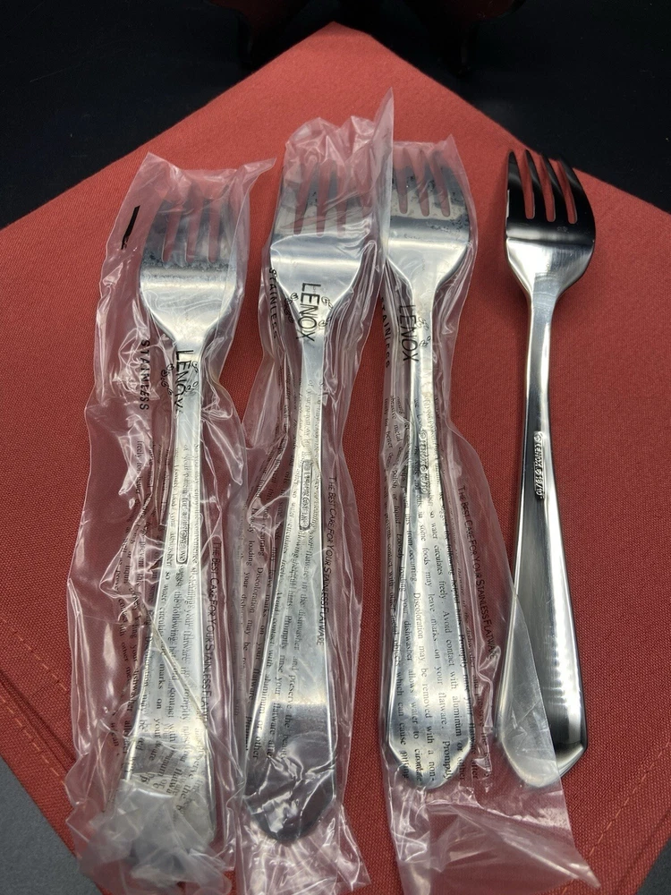 The listing is for 4 (four) Lenox British Colonial Stainless Dinner forks each measures approximately 8-1/8 inches long. New and unused from my own personal stock 17 years ago. They are all in excellent condition. The dinner forks weigh approximately 8 ounces without packaging material. Will package with great care and thank you kindly for your consideration. REASONABLE SHIPPING: Calculated shipping: Weight and distance based shipping via USPS Ground Advantage domestically USA from South Florida. USPS Ground Advantage is lowest shipping cost. Estimated delivery of 2-8 business days. Shipping costs is based on item(s) weight including packaging materials and the distance from the seller’s zip code to the buyer’s zip code. Buyers whose shipping address/zip code is in the East coast of USA tend to have higher shipping costs as distant is longer from seller’s South Florida zip code. Ships globally via Ebay International Shipping Delivery.