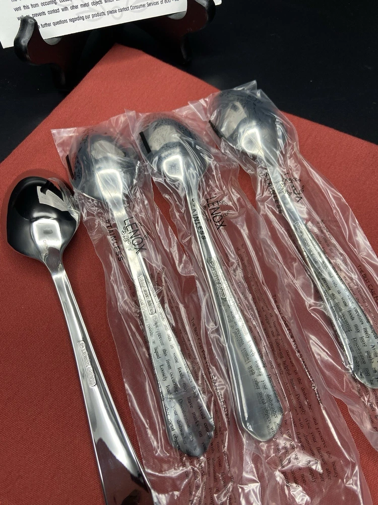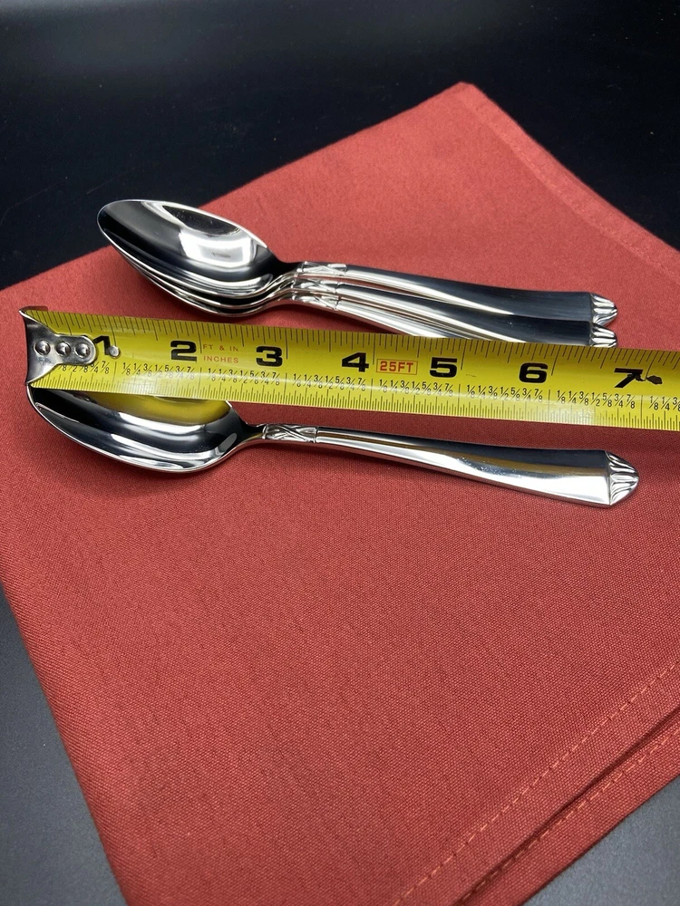 The listing is for 4 (four) Lenox British Colonial Stainless Soup Spoons each measures approximately 7-1/8 inches long. New and unused from my own personal stock 17 years ago. They are all in excellent condition. The soup spoons weigh approximately 7 ounces without packaging material. Will package with great care and thank you kindly for your consideration. REASONABLE SHIPPING: Calculated shipping: Weight and distance based shipping via USPS Ground Advantage domestically USA from South Florida. USPS Ground Advantage is lowest shipping cost. Estimated delivery of 2-8 business days. Shipping costs is based on item(s) weight including packaging materials and the distance from the seller’s zip code to the buyer’s zip code. Buyers whose shipping address/zip code is in the East coast of USA tend to have higher shipping costs as distant is longer from seller’s South Florida zip code. Ships globally via Ebay International Shipping Delivery.