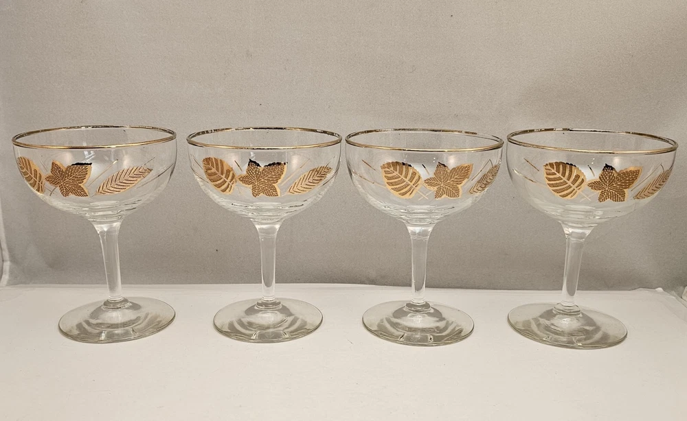 4 ~ Libbey Gold Leaves Cordial Cocktail Sherbet Glasses Vintage 1960's. Condition is Pre-owned and in very good condition. Please see all photos for item details. Shipping USPS.