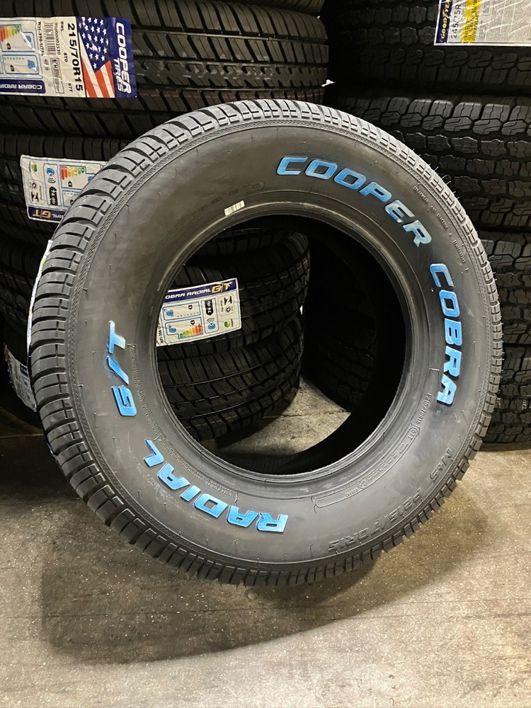 Four (4) New 215/70 R 15 97T Cooper Cobra Radial G/T Raised White Letter Tires Free Shipping These tires are new, not blems, and have never been mounted. Please check fitment before you bid, and email with any questions. These tires are current production. Please note: We ship using FedEx. We process our orders together and ship at the same time. On occasion FedEx will split shipments up and deliveries may come on 2 different days. This is not uncommon and completely normal. 1x = 4 tires Free shipping for 4 tires in the 48 Continental US States Only!