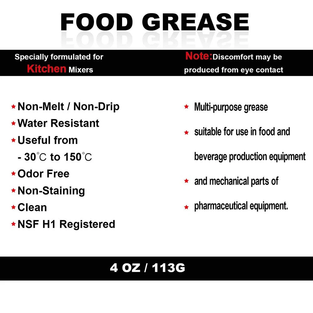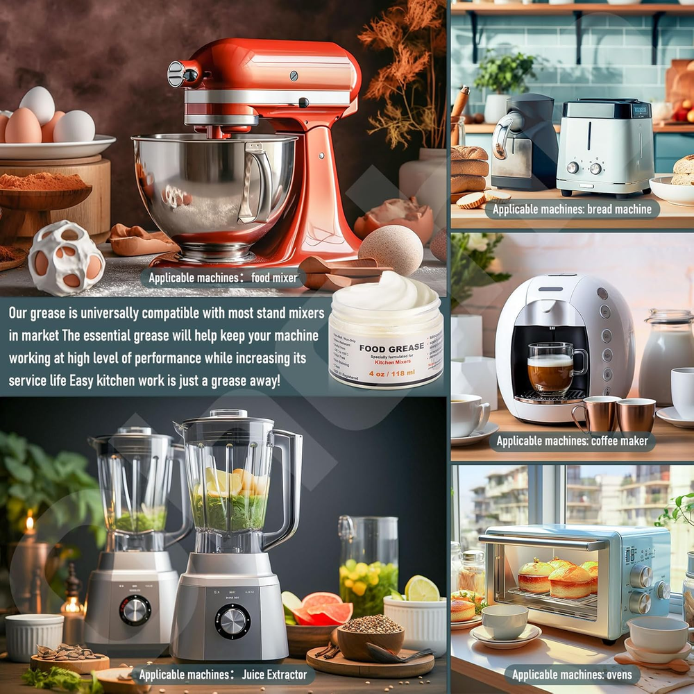 Store New Arrivals Add to Favorite View Feedback Contact 4 Oz Food Grade Grease for Kitchenaid Stand Mixer, Universally - Compatible with Kitchen Stand Mixer - Maintain the Performance of Your Machine and Extend Service Life, with 9709511 4162324 Gasket Description Brand Ohoho Material Silicone Country of Origin China Item Weight 4 Ounces Package Information Jar Liquid Volume 4 Fluid Ounces Package Dimensions 4.76 x 3.94 x 2.64 inches; 4 ounces Compatibility: Universally Compatible Grease for Kitchen Stand Mixers, Ensuring a Perfect fit and optimal Performance. Helps maintain the performance of your stand mixer and extend its service life Food Safe Grease Universally for Blenders, Regular Regreasing Reduces The Mechenical Wear-And-Tear On Your Mixer Gear Parts, So To Keep Your Mixer Running Properly, It Is Highly Recommended To Replace Your Grease When Necessary As Insufficient Grease Can Result In Damage To Your Mixer 4 oz Food Grade Grease for kitchenaid stand mixer, providing ample lubrication for multiple applications and maintenance sessions 9709511 Gasket: Replaces part numbers: AP4326018, 1426121, AH1488426, EA1488426, PS1488426, 9709511, AP6013805, PS11747032, 4162324 Gasket: Replaces AP6009161, 4162324, 4169822, PS11742306 4 oz Food Grade Grease helps appliances run quieter and more efficiently, reducing operating noise and improving the overall performance of the mixer The grease comes with a spoon to offer you more convenience while doing regreasing, Due to high temperature event, the food grease may experience mild melting. To solve this, simply store the grease in a fridge or cool room for a short period to solidfy (and make sure it is not accessible to children) and it is ready to use Product Description 4 Oz Food Grade Grease 4 Oz Food Grade Grease Compatible With Kitchen Stand Mixer-Universally Compatible: Our grease is universally compatible with most stand mixers in market. The essential grease will help keep your machine working at high level of performance while increasing its service life. Food Grade Grease Universally Compatible: Our grease is universally compatible with most stand mixers in market. The essential grease will help keep your machine working at high level of performance while increasing its service life. Easy kitchen work is just a grease away!- food safe grease Scope of application Stand Mixer Regular Regreasing Reduces The Mechenical Wear-And-Tear On Your Mixer Gear Parts Handheld Mixer So To Keep Your Mixer Running Properly, It Is Highly Recommended To Replace Your Grease When Necessary As Insufficient Grease Can Result In Damage To Your Mixer. Blender grease will help keep your machine working at high level of performance while increasing its service life. Meat Grinder Easy to use ABOUT US We offer the best prices around on high quality products. Our E-store includes media such as books, movies, music and games while offering electronics, toys, sporting apparel, clothing, tools, general home, garden items and more. SHIPPING We are always working hard to ensure your package arrives as soon as possible. Please understand that some factors like weather, high postal traffic, and the performance of shipping companies are outside of our control. We offer free shipping to the lower 48 states and ship within 2 business days of payment, usually sooner. We do not accept P.O. Boxes. Please provide a physical address. RETURNS We offer a 30-Day Return Policy on items which you are not completely satisfied with. You have the option for a full-refund or an exchange of the item. No returns are available on items shipped outside of the USA. PAYMENT We accept PayPal. CONTACT US This page content is yet to come Please ad us to your favorite seller and visit again later Thank You CUSTOMER SATISFACTION We try our very best to make sure every customer is completely satisfied. If there's a problem, message us! We're happy to help.