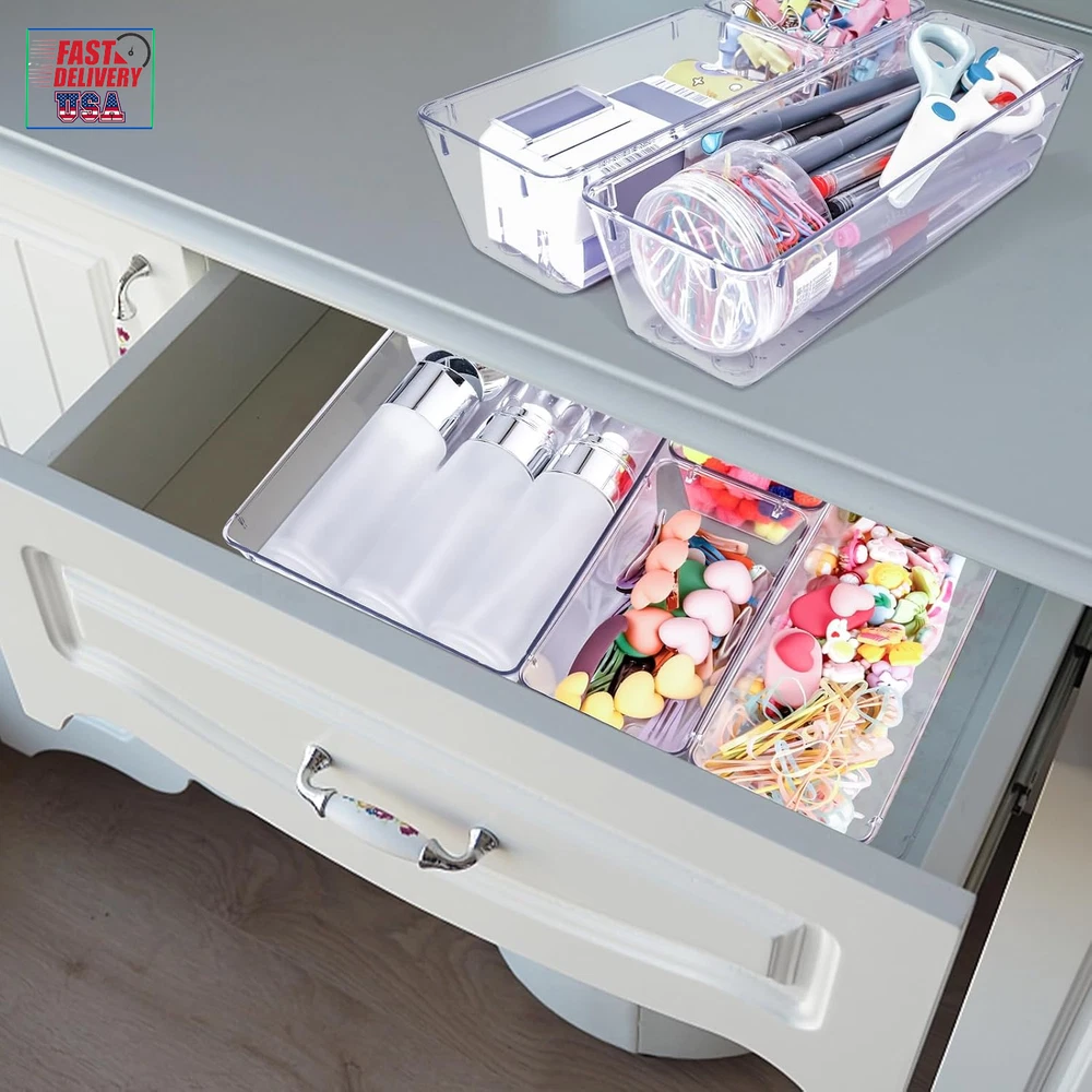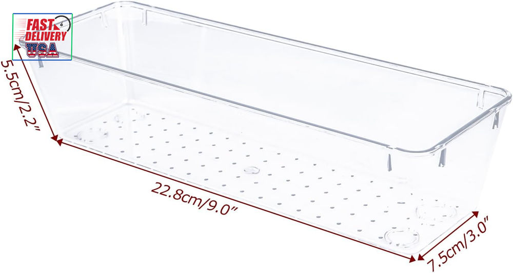 Store New Arrivals Add to Favorite View Feedback Contact 4 PCS Clear Plastic Drawer Organizer, Desk Drawer Divider Organizers and Storage Bins for Makeup, Jewelry, Gadgets for Kitchen, Bedroom, Bathroom, Office (9.0"X3.0"X2.2") Description Item model number DO2311091658 Part Number DO2311091658 Mounting Type Tabletop Mount Number of Compartments 1 Finish finished Included Components NO Unit Count 1.0 Count Color Clear Finish Type finished Product Dimensions 9"D x 2.2"W x 3"H Material Plastic Country of Origin China Batteries Required? No Item Weight 9.1 ounces Batteries Included? No Package Type FFP Special Features Portable Size 9.0"x3.0"x2.2" Special Feature Portable Specific Uses For Product Multipurpose Material: The drawer organizer is made of plastic which may be safely used. The transparent design makes it easy to find what you need quickly. Size: 9.0 x 3.0 x 2.2 inches, Drawer Organizer cases can be stacked and sorted out your space easily. Drawer Space Organizer: These plastic drawer organizers fit different size drawers and areas, such as vanity, bathroom, kitchen, office drawers. Versatile storage: Ideal for organizing cosmetics, makeup tools, hair accessories, jewelry, office supplies, craft supplies, utensils, etc. Stackable Storage: The drawer bins can be stacked into one other when you not use. Product Description ABOUT US We offer the best prices around on high quality products. Our E-store includes media such as books, movies, music and games while offering electronics, toys, sporting apparel, clothing, tools, general home, garden items and more. SHIPPING We are always working hard to ensure your package arrives as soon as possible. Please understand that some factors like weather, high postal traffic, and the performance of shipping companies are outside of our control. We offer free shipping to the lower 48 states and ship within 2 business days of payment, usually sooner. We do not accept P.O. Boxes. Please provide a physical address. For shipping outside of the continental USA, we only use eBay's Global Shipping Program.The item is shipped to KY and then sent to the rest of the world. International customers are responsible for all duties and taxes. Continue to check out in order to calculate costs for shipping the item to your country. Messages regarding eBay's Global Shipping Program MUST be directed at eBay EXCLUSIVELY. RETURNS We offer a 30-Day Return Policy on items which you are not completely satisfied with. You have the option for a full-refund or an exchange of the item. No returns are available on items shipped outside of the USA. PAYMENT We accept PayPal. CONTACT US This page content is yet to come Please ad us to your favorite seller and visit again later Thank You CUSTOMER SATISFACTION We try our very best to make sure every customer is completely satisfied. If there's a problem, message us! We're happy to help. WE ACCEPT Copyright © 2021 AutoDS. | All Rights Reserved