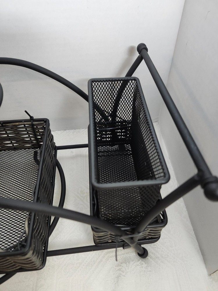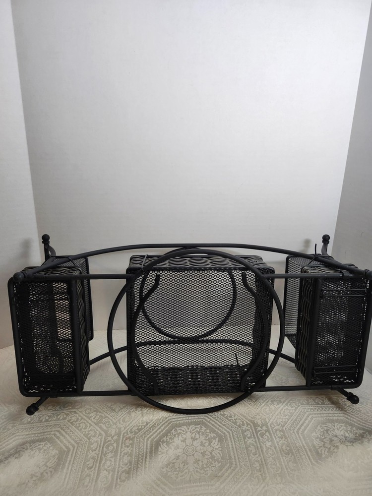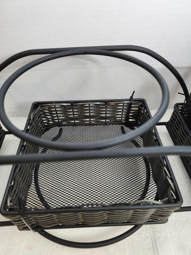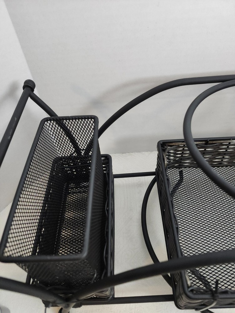 The 4 Piece Deluxe Buffet Caddy Dinner Plate & Cutlery Holder by Mesa is a stylish and practical kitchen storage solution. Made of wrought iron in a sleek black color, this rectangular caddy features 4 compartments and 2 tiers, perfect for organizing and storing dining utensils. With dimensions of 17 inches in length, 7 inches in height, and 7 inches in width, it offers ample space for all your kitchen essentials. The contemporary design adds a touch of elegance to your dining area, while the easy-to-clean feature ensures maintenance is a breeze. Ideal for home or garden, this buffet caddy is a must-have for any kitchen.