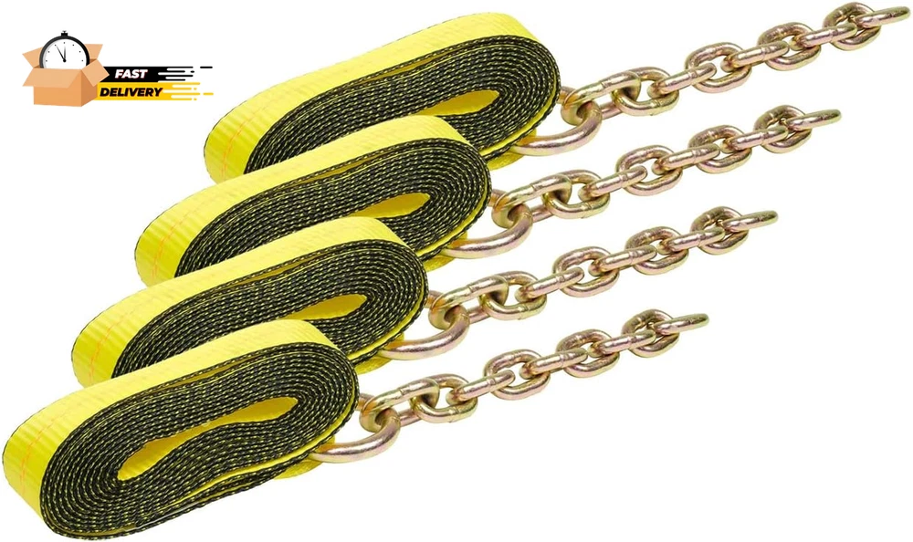 Store New Arrivals Add to Favorite View Feedback Contact (4 Pack 2" X 14' Replacement Tie down Strap with Chain Extension Description Unit Count 4 Count Fastener Type Chain Hook Fastener Material Stainless Steel Color 4 - Pack Material Polyester Load Capacity 4000 pound Vehicle Service Type Passenger Car, Trailer Item Weight 8.52 pounds Size 2" x 14' Strap w/ Chain Number of Pieces 4 Product Dimensions 168"L x 2"W Replacement Tie Down Straps for 8-Point Tie Down Kits Length: 14' Width: 2" Chain: 3/8" Working Load Limit: 4,000 lbs Pack Size: 4 Pack Mytee's Replacement Tie Down Straps for 8-Point Tie Down Kits Length: 14' Width: 2" Chain: 3/8" Working Load Limit: 4,000 lbs Breaking Strength: 12,000 lbs Strap w/ 3/8" x 14' Chain Extensions 12,000 LB BREAKING STRENGTH. Our 8-point tie-downs are the strongest auto-hauling on the market. No matter what kind of vehicle you need to haul, these straps can handle it. Each strap on it’s own has a Working Load Limit (WLL) of 4000lbs, and a breaking capacity of 12,000 lbs. DURABLE POLYESTER WEBBING. Our straps are made of durable polyester webbing. Polyester webbing barely stretches at all under heavy loads, it resists taking damage from scrapes or cuts, and water slides right off it--so mildew can’t grow and ruin it. HEAVY DUTY 3/8" CHAIN EXTENSIONS. Our gold-chromate chain extensions are corrosion-resistant, so they won’t wear out from rust over time. Chains are forged from heat-treated steel alloy, and they’re strong enough to lift a car with a crane! In this case, though, let’s stick with using them to secure the car to your flatbed. ABOUT US We offer the best prices around on high quality products. Our E-store includes media such as books, movies, music and games while offering electronics, toys, sporting apparel, clothing, tools, general home, garden items and more. SHIPPING We are always working hard to ensure your package arrives as soon as possible. Please understand that some factors like weather, high postal traffic, and the performance of shipping companies are outside of our control. We offer free shipping to the lower 48 states and ship within 2 business days of payment, usually sooner. We do not accept P.O. Boxes. Please provide a physical address. For shipping outside of the continental USA, we only use eBay's Global Shipping Program.The item is shipped to KY and then sent to the rest of the world. International customers are responsible for all duties and taxes. Continue to check out in order to calculate costs for shipping the item to your country. Messages regarding eBay's Global Shipping Program MUST be directed at eBay EXCLUSIVELY. RETURNS We offer a 30-Day Return Policy on items which you are not completely satisfied with. You have the option for a full-refund or an exchange of the item. No returns are available on items shipped outside of the USA. PAYMENT We accept PayPal. CONTACT US This page content is yet to come Please ad us to your favorite seller and visit again later Thank You CUSTOMER SATISFACTION We try our very best to make sure every customer is completely satisfied. If there's a problem, message us! We're happy to help. WE ACCEPT Copyright © 2021 AutoDS. | All Rights Reserved