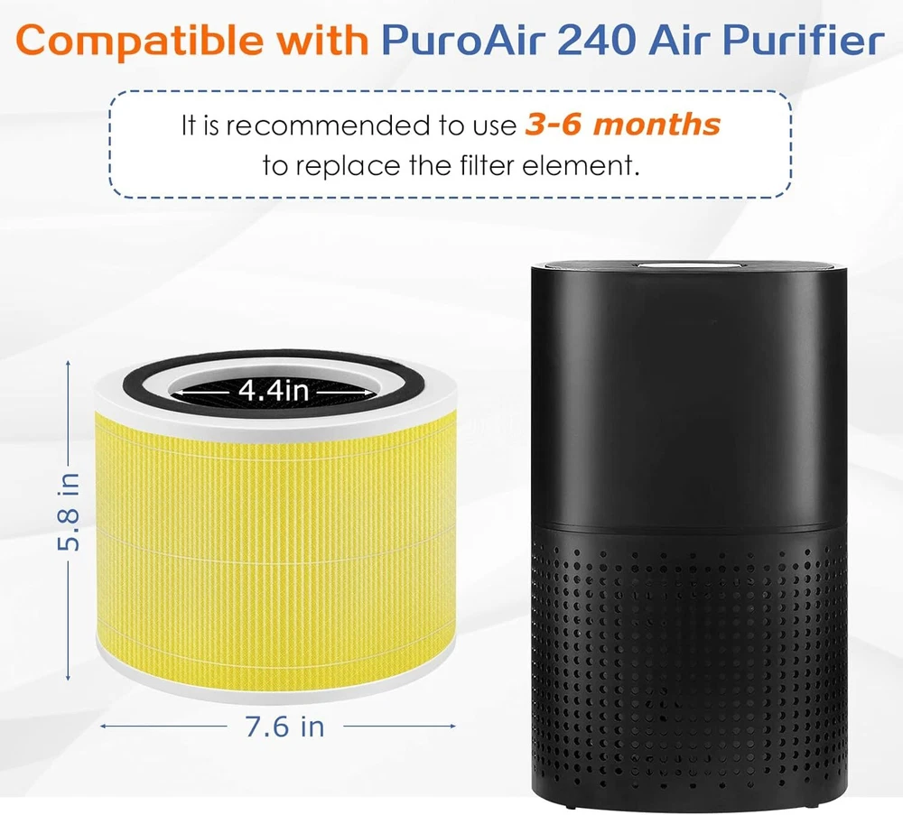 Product Description 14 True HEPA Pet Allergy Filter Replacement for Puro 240 Air Purifier,3 in 1 True HP-14 Activated Carbon Filter,4 Pack 14 True HEPA Filtration:The high efficiency 14 True HEPA air filters capture 99.99% of airborne particles and particles as small as 0.1 microns. The activated carbon prefilter absorbs smoke, cooking fumes and noxious odors from harmful volatile organic compounds. Compatible Models:These 240 Replacement Filter is specfically compatible with 240 Air Purifier Only.NOTE: This is not a OEM product. Any use of the brand name or model designation for this product is made solely for purposes of demonstrating compatibility. 3-in-1 High Efficiency Filtration :Our 14 True HEPA Air Purifier Filter Replacement features 3-Stage Filtration System: ①Fine Nylon Preliminary Filter ②14 True HEPA Grade Filter ③Activated Carbon Filter. Value Packaging: Package includes 4 x 14 True HEPA Pet Care Air Purifier Filter Replacements . It is recommended to replace filter every 6-8 months for optimal performance (depending upon your usage and environment). 100% Satisfaction: If you have any problem, our service team will help you solve it within 24 hours. If your filter has any quality as well as transportation problems, you can ask for a replacement or refund. Customer satisfaction and quality products are our unremitting pursuit. About Us We are a reputable seller with many years of experience selling on eBay. Our goal is to provide high-quality products and excellent customer service. Payment 1.We accept PayPal only. 2.All major credit cards are accepted through secure payment processor PayPal. 3.Payment must be received within 7 business days of auction closing. 4.We ship to your eBay or Paypal address. Please make sure your eBay and Paypal address is correct before you pay. Feedback will be left automatically after we receive your feedback. Please contact us before leaving a Negative feedback or Neutral feedback. We would try our best to help you solving any problem. Shipping Items will be shipped within 1-3 business days when we received payment. (Orders are not processed on weekends & holidays) Tracking information will be sent once item is shipped. Delivery time depends on destination and other factors Item is shipped to ebay address. Leaving correct address can minimize delay. For international shipping and shipping to Guam, Hawaii and Alaska, Please contact us before placing the order. International buyers please note: Import duties, taxes and charges are not included in the item price or shipping charges. These charges are buyer’s responsibility. We will try our best to reduce the risk of the custom duties. Local pick-up is unavailable at the moment. Returns For any issues with Defects, Return, Item Exchange request, please contact us first and send us a message first before opening any type of case or request. We devote ourselves making EVERY CUSTOMER in 100% Satisfactory and resolve any problem. We highly value and appreciate your business. Thank you. No returns will be accepted without an RMA number. Please contact us for the RMA number. Return is acceptable within 30 days of delivery. Return for replacement or money back is optional. Returned items must be in the brand new, unaltered and resalable condition. Seller is not responsible for any labor cost, expense in a dealer store, or damage due to wrong installation. Contact Us We reply any email messages within 1 business / working days(off-duty at weekend). If you do not get a response from us, then please check your junk or spam mailbox. Our Business hours: Mon-Fri 9:00-18:00, UTC/GMT +8 hour s . Please contact us either by clicking "contact seller" in the "purchase history" section or simply click "ask a question" at the bottom of this page. If you are unsatisfied with our item or service, please contact us before leaving any feedback. We are committed to resolve all issues in a friendly and satisfactory manner. To provide you with better service, please provide the following information in your email: Your ebay ID Order problem, order number For product questions, the eBay article number, the product URL or the product SKU Unfortunately, the eBay guidelines do not allow us to provide a phone number. But if you'd rather call please send us an email.