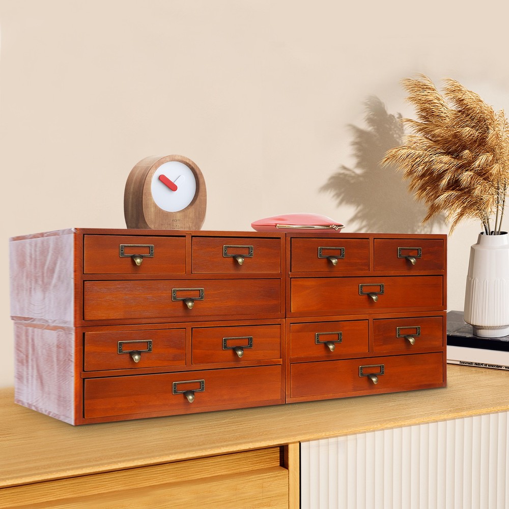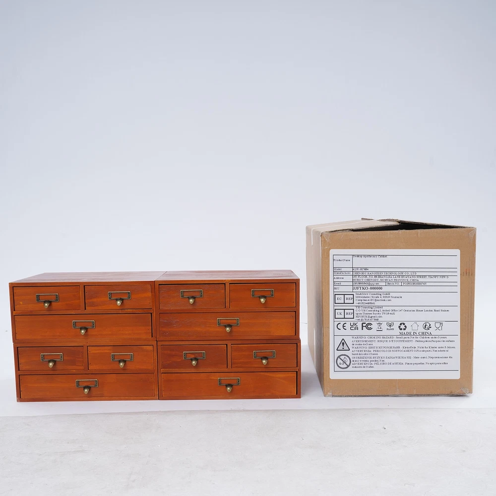aterial: Pine Wood, Metal Process: Spray Painting Color: Brown Shape: Rectangular Assembly Required: No Mounting Type: Desktop Number of Drawers: 12 Number of Pieces: 4 Each Organizer Total Load Capacity: 10kg/22.05lbs Small Drawer Size: 13.9*25*4.7cm/5.47*9.84*1.85in Large Drawer Size: 30.8*25*4.7cm/12.13*9.84*1.85in Each Organizer Size: 34.5*27*15cm/13.58*10.63*5.91in 4 Organizers Total Size: 69*27*30cm/27.17*10.63*11.81in Pakage Size: 60*36*40cm/23.62*14.17*15.74in Gross Weight: 11kg/24.25lbs Net Weight: 10.45kg/23.04lbs Package Included 4* Desktop Organizers 4 Pack 3 Drawer Wooden Desktop Organizer Drawer Storage Box For Tabletop Description This desktop organizer set is a four-piece set. It will provide plenty of space for organizing your items. With a total number of 12 drawers, it can easily categorize and store items to keep your room organized. It adopts premium materials and combines a tough structure with a beautiful appearance, making it an ideal choice for bringing a new atmosphere to your home. Key Features Build to Last: Made of premium pine wood and metal with a spray painting process on the surface, this product is wear-resistant, impact-resistant, and not easy to deform, ensuring a long service life. Ample Storage Space : Our package comes with 4 desktop organizers, and each organizer has three large-capacity drawers, allowing you to easily store jewelry, cosmetics, documents, and other small items, making your desktop cleaner. Smart Design: The 4-piece set allows for great flexibility. You can either combine the four organizers to create a large storage unit, ideal for maximizing space in a room, or use them separately to fit different areas and storage needs. Stable Structure: Its premium material and rectangular structure enable it to withstand a total weight of 22.05 lbs without wobbling or collapsing, which is durable and reliable, so you can use it with confidence. Beautiful and Elegant: The classic rectangular shape and pleasing color give the product a timeless and stylish look that can complement any decor style, adding a touch of sophistication to the room. Easy to Clean: Just a simple wipe can remove dirt and stains on the smooth surface, which is time-saving and effort-saving in maintenance. Space-saving: It occupies a small area and the multi-tier design uses vertical space rationally, so you get more space to store items without taking up too much desk space. Moreover, they are stackable for your convenience. Ideal Gift: With its beautiful appearance and practicality, it can be given as a great Christmas or housewarming gift for your family and friends. Buy with Confidence: We stand behind all our guests and look forward to assisting you with your purchase. It is our pleasure to answer your confusion and questions. Details Metal Handles: They make it easier for you to pull out and close the drawer and improve the beauty of the whole product. They can also work as label holders, allowing you to write the labels (not included) for each drawer to categorize, helping you quickly find desired items. Smooth Edges: Smooth and burr-free edges not only increase the beauty of the product but also improve the safety of use. Application This product can be used in living rooms, bedrooms, study rooms, offices, dormitories, kitchens, schools, coffee and tea bars, and other places. It can be used to store cosmetics, jewelry, letters, papers, tea bags, sugar packets, necklaces, earrings, bracelets, rings, perfumes, lipsticks, household medications, herbs, nutrition-related capsules, and other items. Specification Material: Pine Wood, Metal Process: Spray Painting Color: Brown Shape: Rectangular Assembly Required: No Mounting Type: Desktop Number of Drawers: 12 Number of Pieces: 4 Each Organizer Total Load Capacity: 10kg/22.05lbs Small Drawer Size: 13.9*25*4.7cm/5.47*9.84*1.85in Large Drawer Size: 30.8*25*4.7cm/12.13*9.84*1.85in Each Organizer Size: 34.5*27*15cm/13.58*10.63*5.91in 4 Organizers Total Size: 69*27*30cm/27.17*10.63*11.81in Pakage Size: 60*36*40cm/23.62*14.17*15.74in Gross Weight: 11kg/24.25lbs Net Weight: 10.45kg/23.04lbs Package Included 4* Desktop Organizers Notes Please check the product size carefully before purchasing. Please note that this product should not be exposed to direct sunlight or rain, and should not come into contact with alcohol or corrosive liquids. Please note that this product does not include other items shown in the picture. Please allow the slight color difference caused by the shooting light and the 1-3 cm error due to manual measurement, and make sure you do not mind before ordering. Payment Delivery details Terms of sales About us Contact us Payment We accept ebay payment 。 Fees such as import duties, taxes are not included in the item price or shipping costs. These charges are the buyer's responsibility. Delivery details Shipping: 2-9 working days to: USA Terms of sales We maintain high standards of excellence and strive for hundred percent customer satisfaction. Feedback is very important to us. We hope that you contact us immediately before you give neutral or negative feedback, so that we can address your concerns. It is impossible to address issues if we do not know about them! About us Your satis faction is our ultimate goal. We work hard to earn your trust and future business. Our certified technicians have tested each item before shipping. The unit comes with 1 year limited warranty on all manufacturing defects. a) If you receive a defective item, you may return it or ask for a discount. Please contact us within 14 days after you receive the package. b) What you returned must be intact and in its original packaging as re? u. Customer is responsible for shipping costs of the returned item. c) We will cover the cost of shipping back t with the shipping rate indicated in the registration page. We will send you a new unit or refund the full payment you paid. Thank you. Contact us Business Hour Business Hour: Monday To Friday: 
