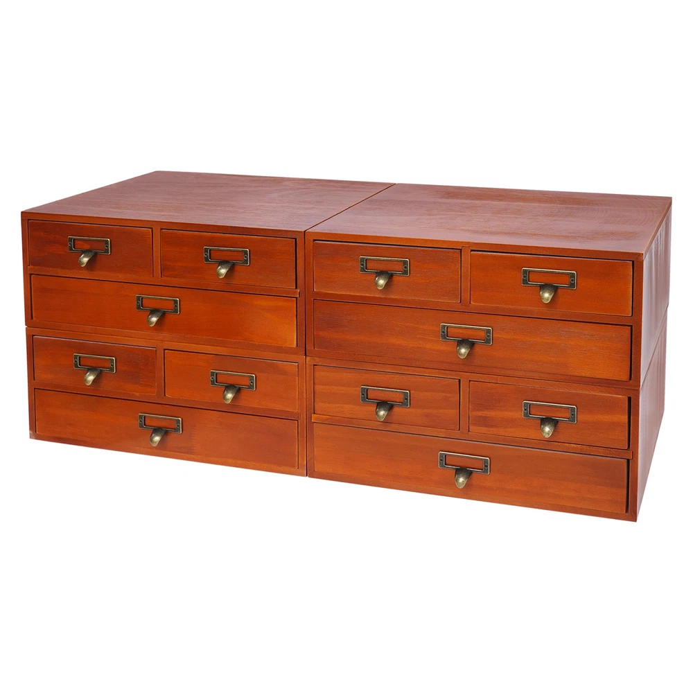 4 Pack 3 Drawer Wooden Desktop Organizer Drawer Storage Box For Tabletop- Black