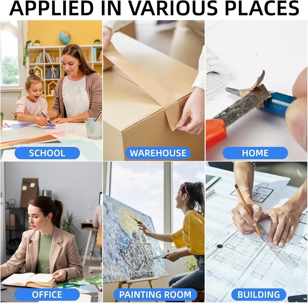 4 Pack Box Cutter Knife, 3-rd Gen Utility Knives, Razor Blade Opener, Utility Knives, Box Cutters Retractable, Small Work Knife by Htaexpu Product Description The Htaxepu Advantage: Join the 5 million+ powered by our leading technlogy Our Essential Tools: Our box cutters are suitable for all aspects of the families, offices and schools, such as artwork, cutting cardboard boxes, duct tape, letters, paper Safty and Easy: Our utility knives blade for deep exact cuts. Prevent blade slipping with the safety lock tab What You Get: 4 Pcs heavy duty retractable box cutters. The razor knife has 4 different colors among which red, yellow, blue and green. Please choose the one you prefer Our Mission: To create a better lifestyle with better products! If there is any problem in the use, feel free to get in touch with our team, we will reply you within 24 hours