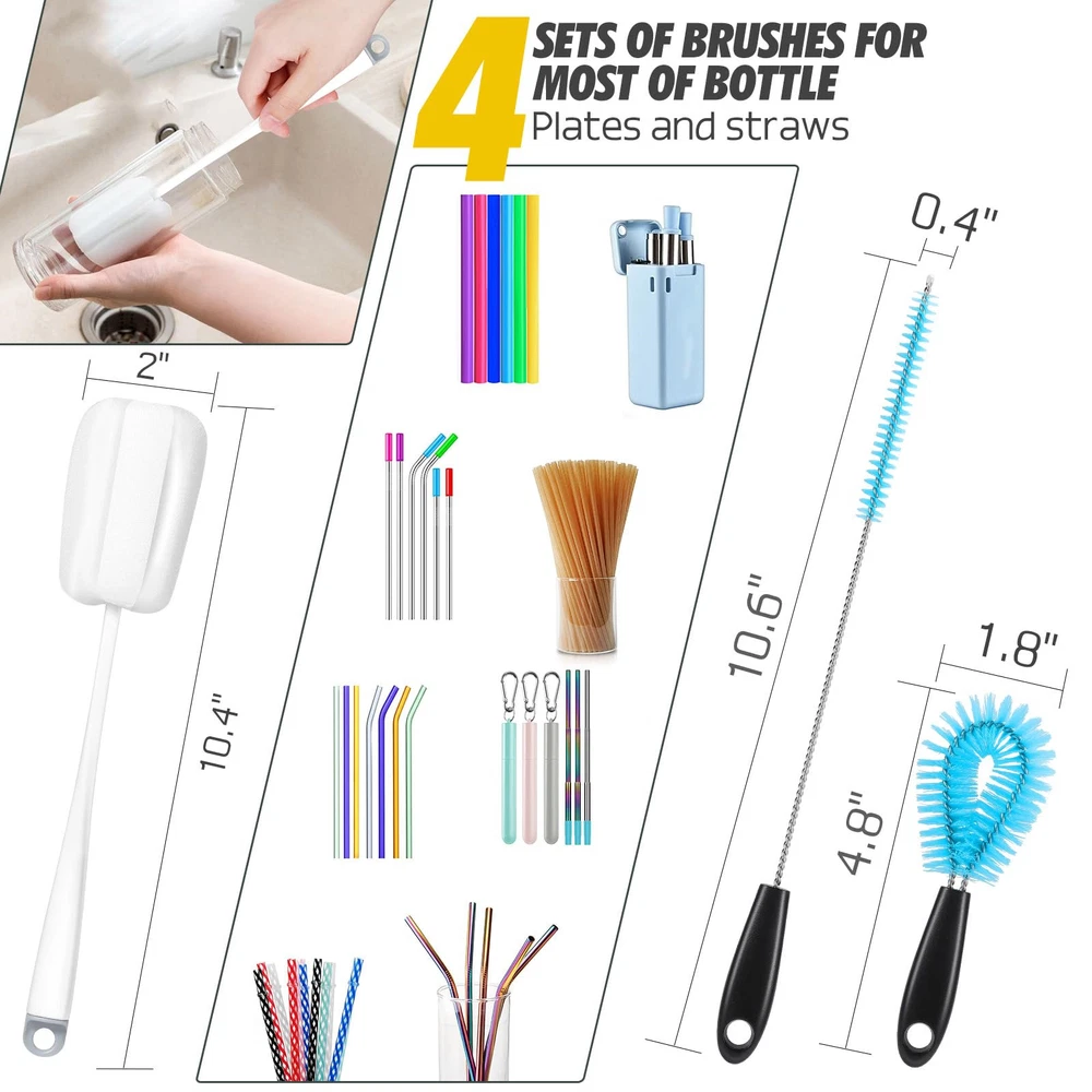 Water bottle cleaning brush BRUSH MATERIAL: The water bottle cleaning brush is made of stainless steel and durable nylon material for comfort and durability, and the bristles are very soft and won't leave scratches on your water bottle. NON-SLIP HANDLE: Rubber-covered handle and ergonomic grooves provide a non-slip grip, and the 15-inch extension brush is designed to reach the bottom of the bottle for a deep clean. NON-SLIP HANDLE: Rubber-covered handle and ergonomic grooves provide a non-slip grip, and the 15-inch extension brush is designed to reach the bottom of the bottle for a deep clean. EASY TO HANG: The water bottle cleaning brush has a hanging hole design on the handle, you can hang up several brushes to store them when not needed, it will not take up space.