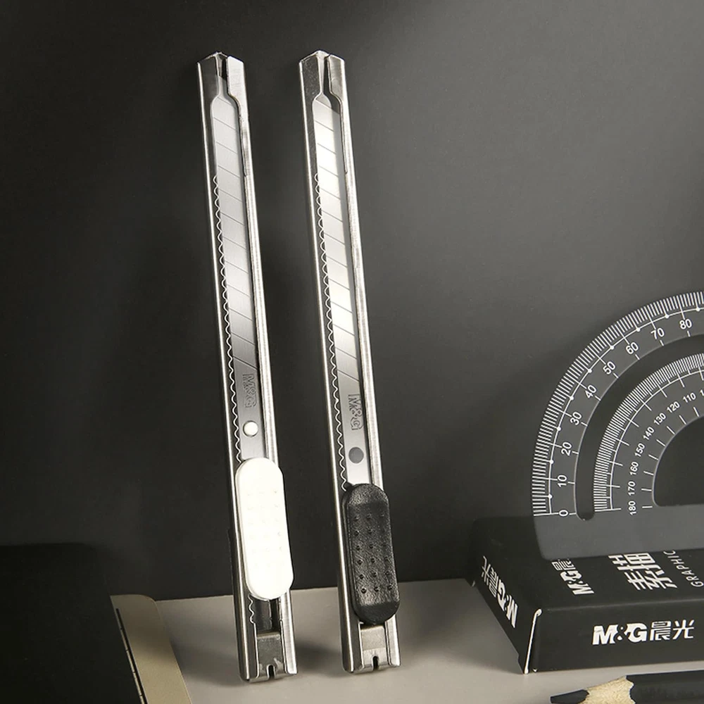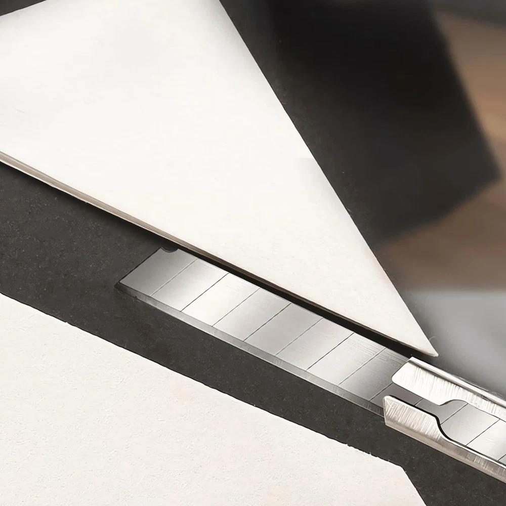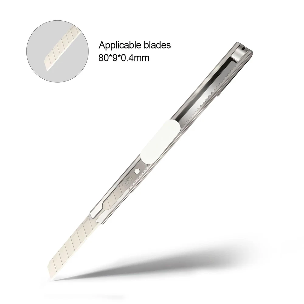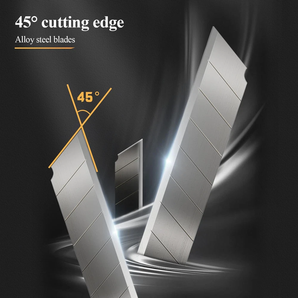 【Snap-Off Blades】: box cutter features 9mm wide snap-off blades, providing a safe and convenient way to change out blades when needed. The blades are made from high-quality stainless steel, ensuring durability and sharpness. 【Retractable Design】: The box cutter has a retractable design, making it easy to use and store. The blades are securely held in place when not in use, preventing accidental cuts or injuries. 【Comfortable Grip】: The box cutter is designed with a comfortable grip, making it easy to hold for extended periods. It is lightweight and easy to maneuver, making it suitable for various cutting tasks. 【Versatile Uses】: The box cutter is versatile and can be used for a wide range of tasks, including cutting cardboard, wrapping paper, plastic bags, and more. It is ideal for home, office, and school use. 【Safety Features】: The box cutter has safety features to prevent accidental cuts or injuries. The blades are securely held in place when not in use, and the retractable design prevents them from accidentally deploying.