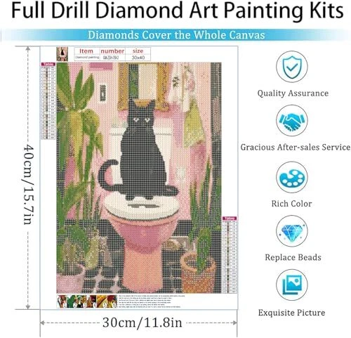 Return Policy Fast Delivery Trusted seller 4 Pack Diamond Painting Kits for Adults,Diamond Painting Kits,5D Diamond Art Kits for Adults Black Cat Diamond Painting Full Drill Diamond Dots Gem Art Painting Kits for Home Decor12x16inch Product Description 【Round diamond art kits】 5D Round Diamond Bits in Label Packaging, 1 Diamond Smudge Pen, 1 Wax for Picking Up Diamonds with Smear Pen, and 1 Tray for Placing Diamonds with 18 Pieces per Diamond Point Sparkling faceted, high quality acrylic diamonds are colorful and bright! 【Easy operation】The diamond art numbers and symbols on the HD canvas are clear and easy to read, you can easily complete the painting according to the steps, you can get about 30% extra beads in each color to prevent the diamond shortage. The drill sticks to the canvas effortlessly and the diamond holds up well and doesn't fall off. 【Round Full Drill Diamond Painting Design】: Full drill means that all patterns are covered by diamonds. Stitch diamond painting kits for adults are round. Which makes the finished stitch diamond art look more sparkly and dimensional. 【Add Fun To Life】: DIY 5D diamond stitch kit is very easy to make to enhance their hands-on ability and develop patience. Diamond art stitch It is also the best choice for adults, it can make you feel calm, and it is also the best choice to kill time. Stitch diamond paintings can also be used as holiday gifts for family and friends. 【Best Gift & Artistic Home Decor】This is a set of out-of-the-box DIY tools.You could use it perfectly for housewarming gift,birthday gift,Thanksgiving Day gift,Christmas presents.The finished gem painting can be framed and perfectly decorated in any indoor location,such as bedroom,living room,office, bedside,kitchen,etc.which can add more fun to your life. Shipping Returns Payment Shipping Shipping is FREE to all addresses other than APO/PO boxes in the lower 48 states. All our stock ships from US-based warehouses. Shipped via USPS or UPS (depending on location and package weight) Unless stated otherwise, all orders will ship within 24-72 hours of your payment being processed. Check our feedback to see the great reviews of FAST shipping we offer. Returns Seller does not accept returns Payment We currently accept payment via eBay managed payments only. Once payment is cleared, we will dispatch your shipment within 1-3 business days. Please refer to the "Shipping" tab for more information regarding shipping speed to your destination.